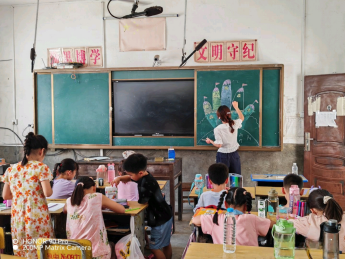 美术课堂同样精彩纷呈。志愿者但秋艳站在黑板前,大笔一挥便勾勒出示范画作。志愿者们始终坚信“示范是教学的关键,实践是真知的关键”,她先讲解线条运用和色彩搭配的技巧,再让孩子们临摹创作。孩子们在模仿基础上大胆加入自己的想法,让孩子们在画笔与色彩的碰撞中徜徉于艺术的海洋。