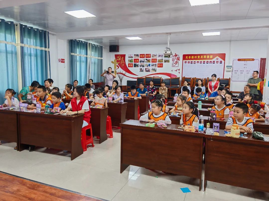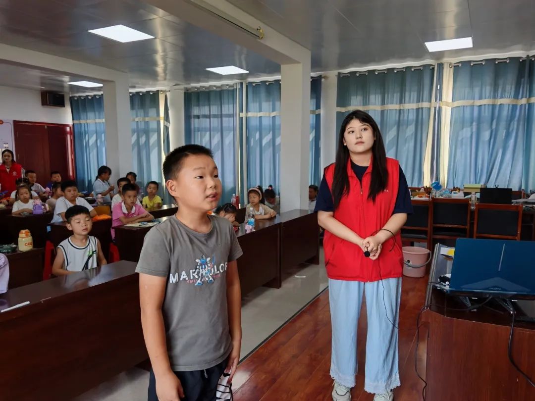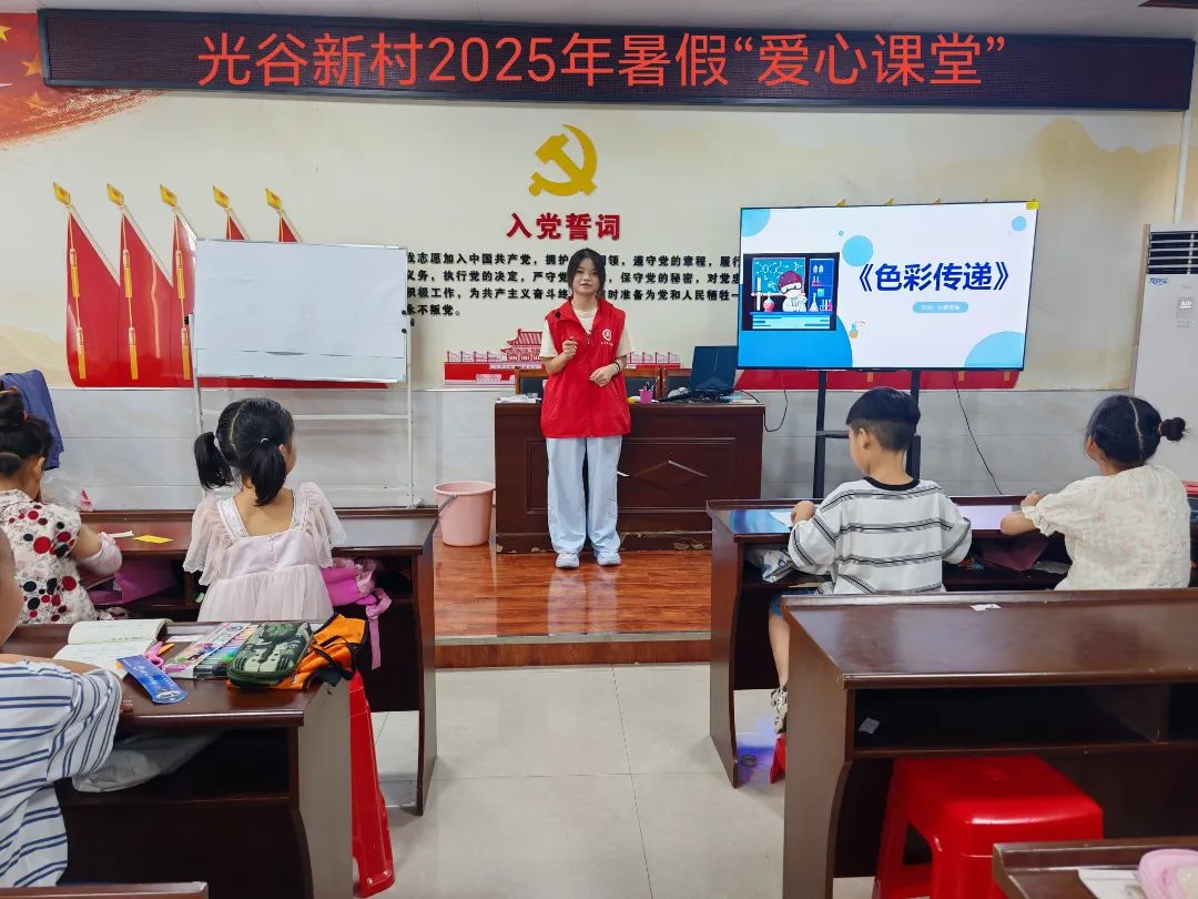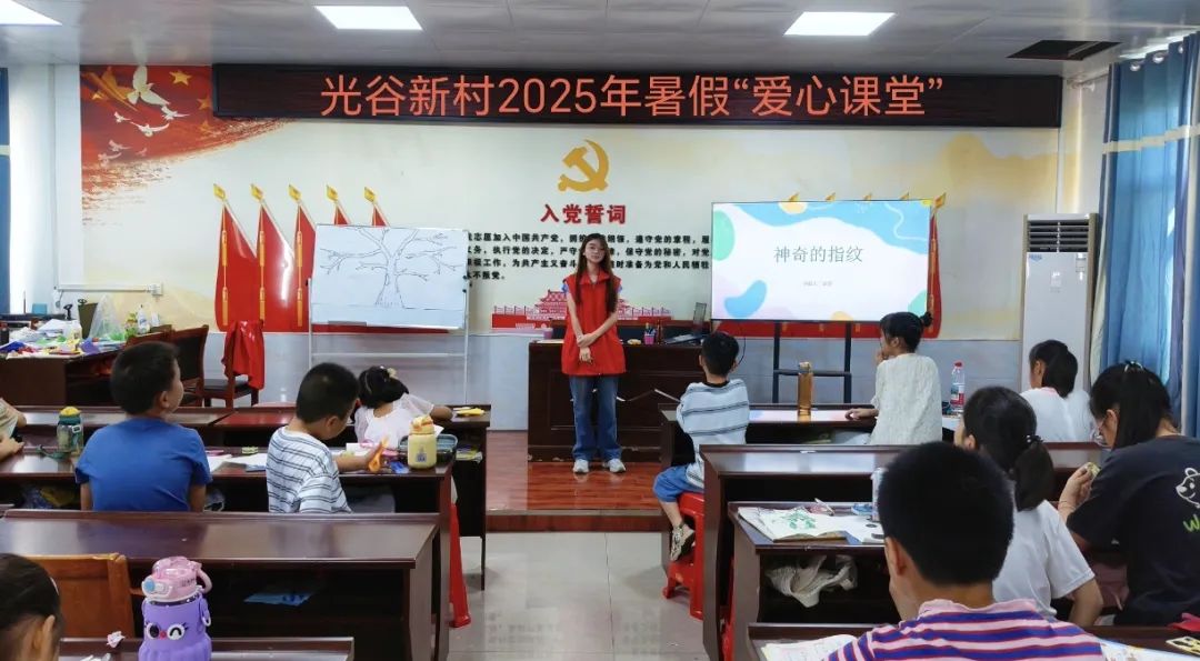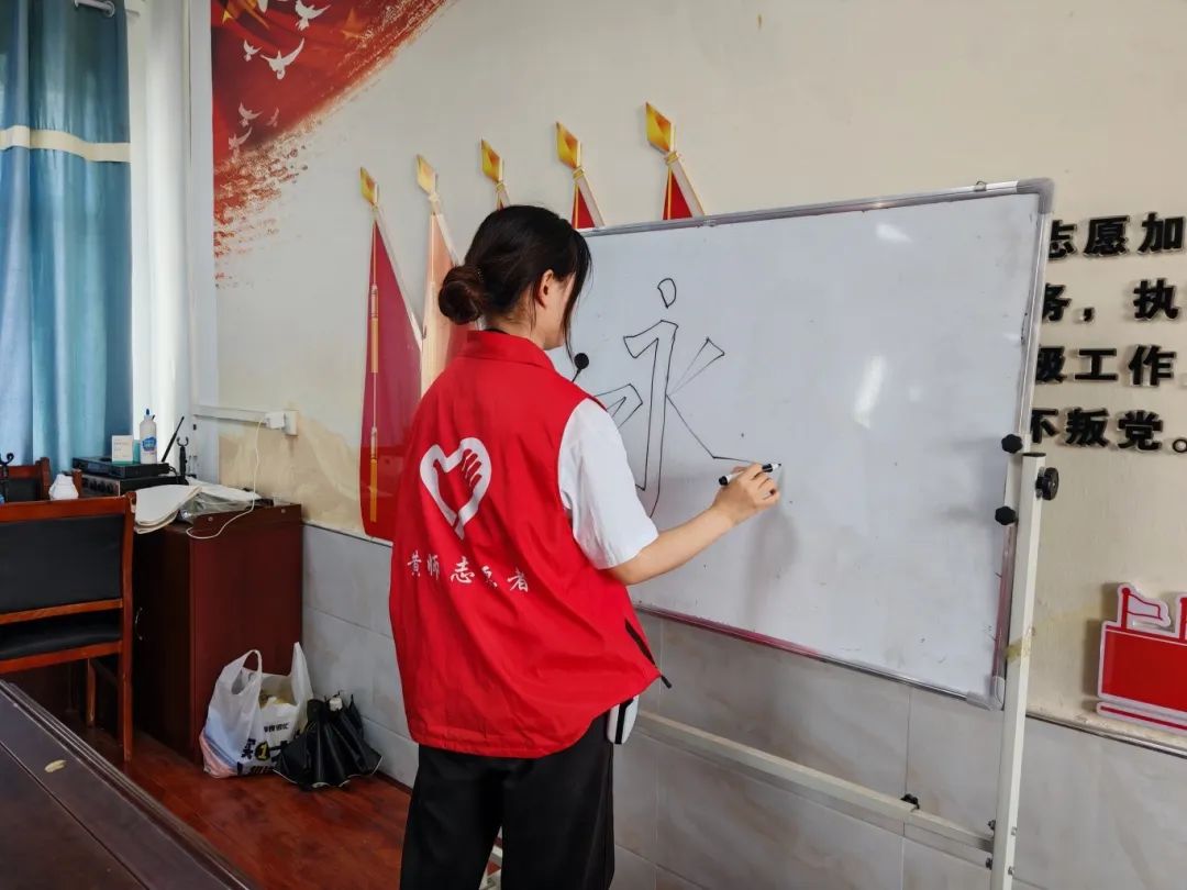 七月的阳光洒满堵城镇光谷新村,青春黄师服务队的志愿者们带着满腔热忱,为这里的孩子们开启了一场别开生面的爱心课堂。开班仪式上,志愿者们与孩子们手拉手围成圈,用歌声和笑容打破陌生——“我叫乐乐,我喜欢画画”“我是志愿者小李老师,今天教大家写毛笔字呀!”简单的自我介绍后,一张定格着数十张灿烂笑脸的合照,为这场爱心之旅按下了启动键。
