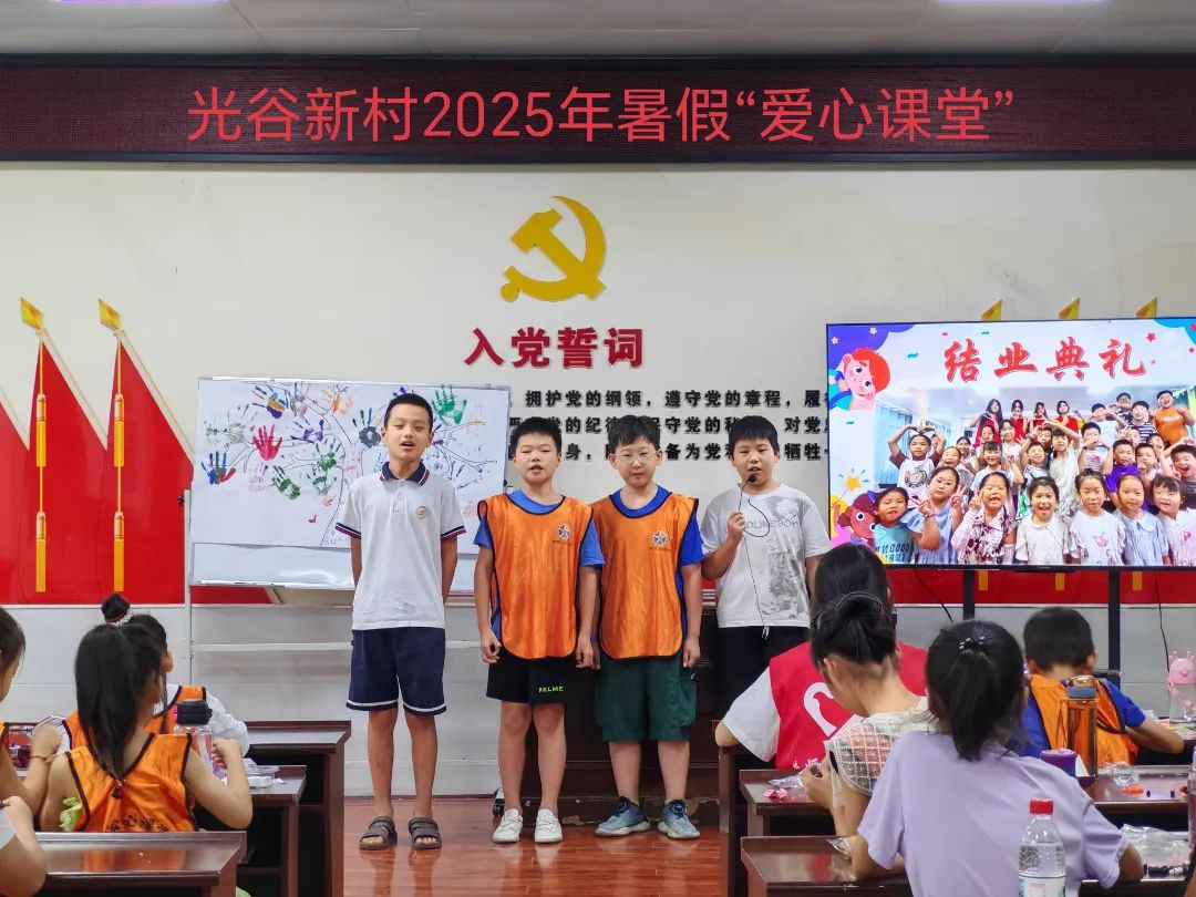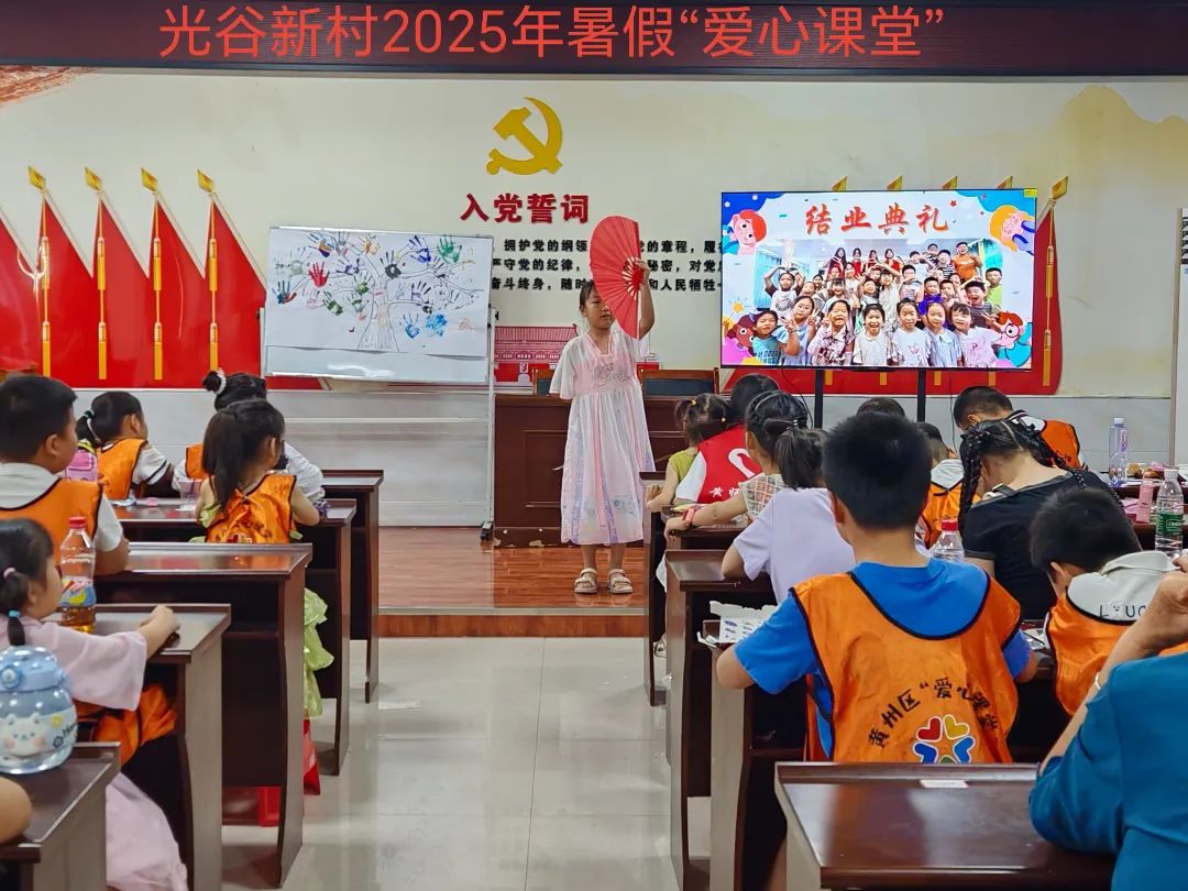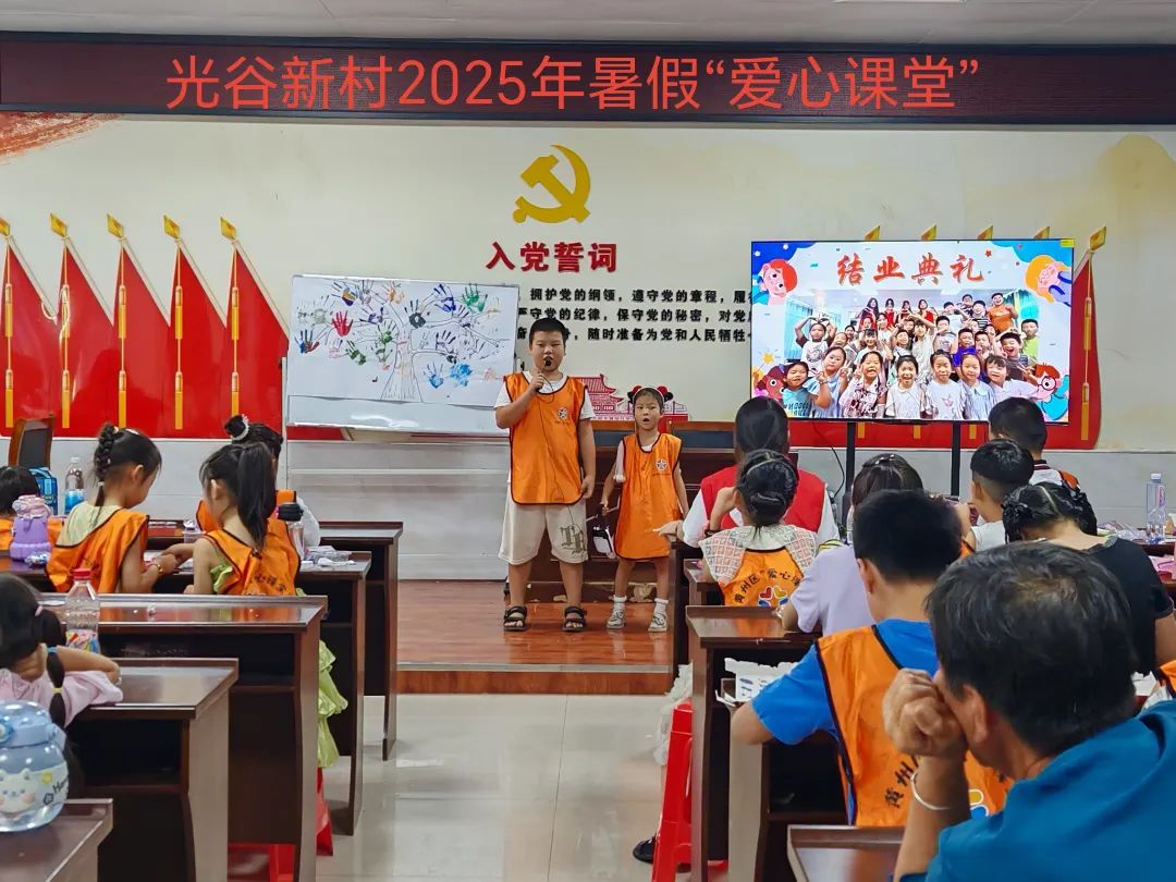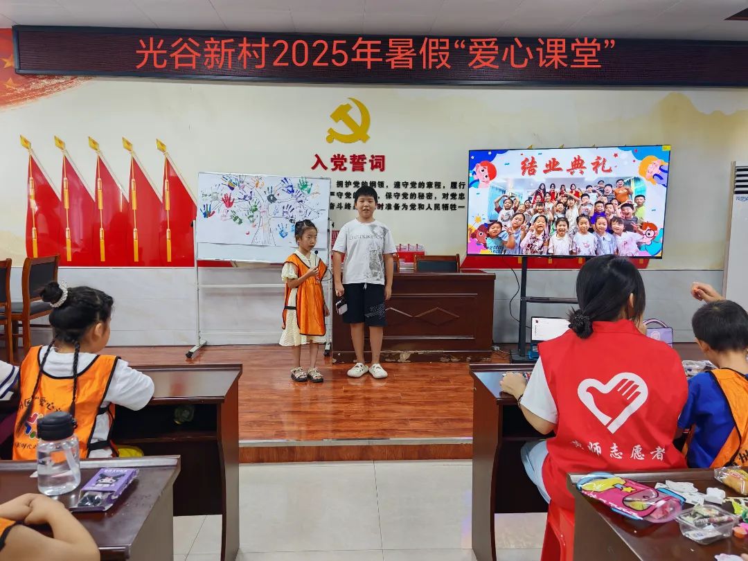 时光在欢声笑语中溜走,爱心课堂的最后一天,结业典礼成了温馨的聚会。志愿者们为每个孩子准备了印着“温暖小伙伴”的奖状,以及丰富多彩的小礼物。家长们坐在后排,看着孩子们表演合唱、展示书法作品,眼里满是欣慰。当孩子们与志愿者、家长并肩合影时,夕阳穿过树叶,在每个人脸上镀上温暖的金边。