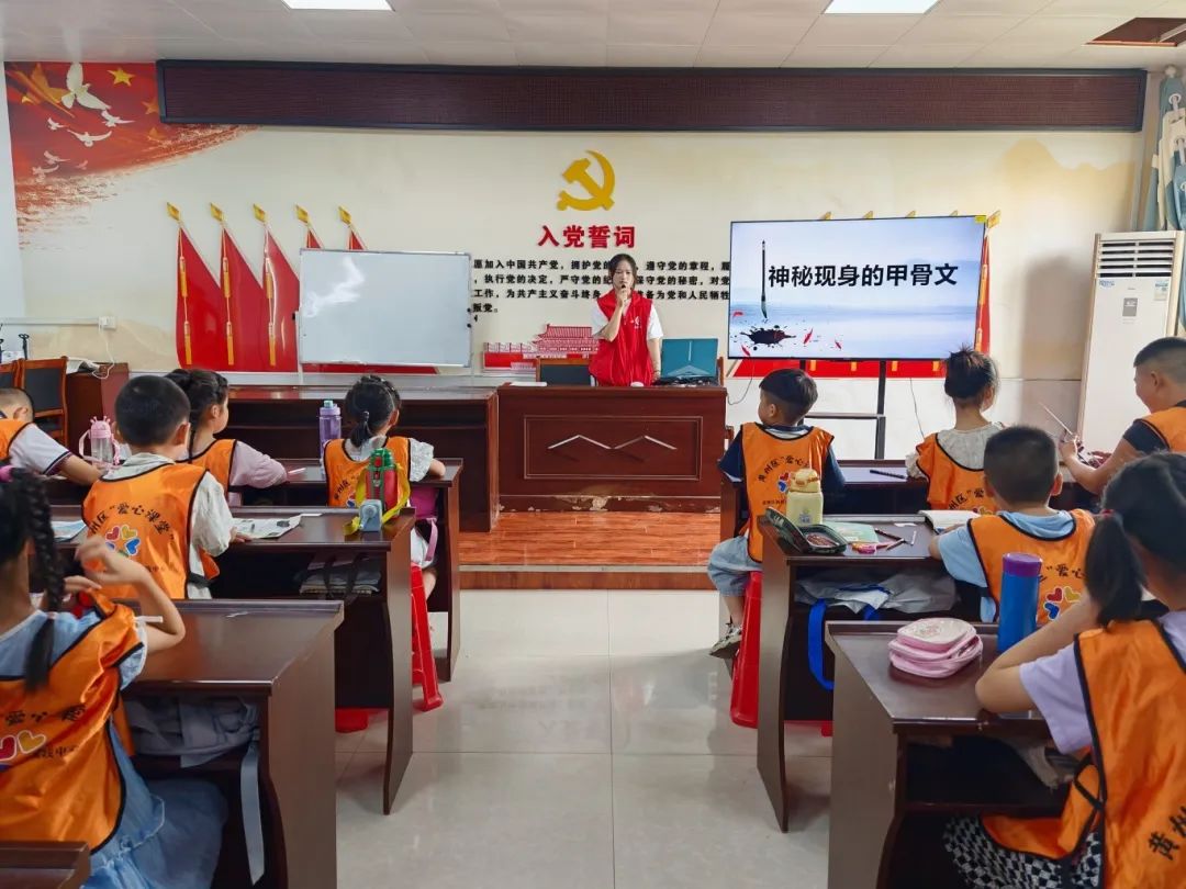 甲骨文里藏着千年的秘密,志愿者们从甲骨文讲起,笔画间的弯曲线条在孩子们眼中变成了跳动的小精灵。“看,这个字像不像一个人双手举着美酒,在祈福呢?”孩子们瞪大好奇的眼睛,跟着用橡皮泥捏出歪歪扭扭的甲骨文,有的像小蛇,有的像树枝,引得满堂欢笑。随后,毛笔在宣纸上晕开墨香,志愿者手把手教孩子们写“福”,最后大家合力完成一幅“百福图”,纸上的墨痕里,藏着孩子们对世界最纯真的祝福。