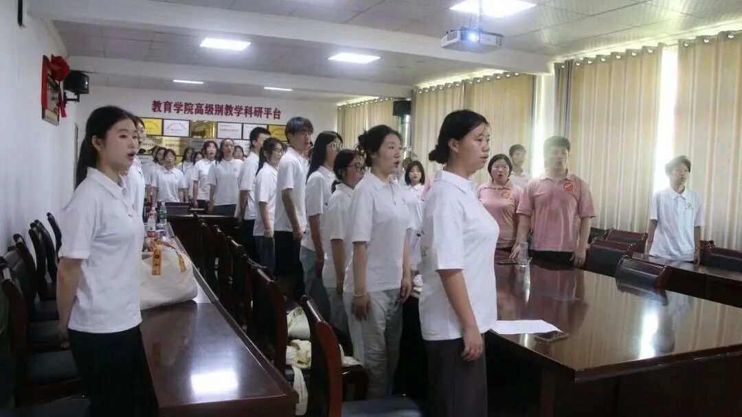 7月5日,教育学院“繁星”社会实践团队2025年“七彩假期”三下乡出征仪式于致远楼616会议室举行。学院党委书记钟劲松、党委副书记徐丹等参会,全体队员参会。
