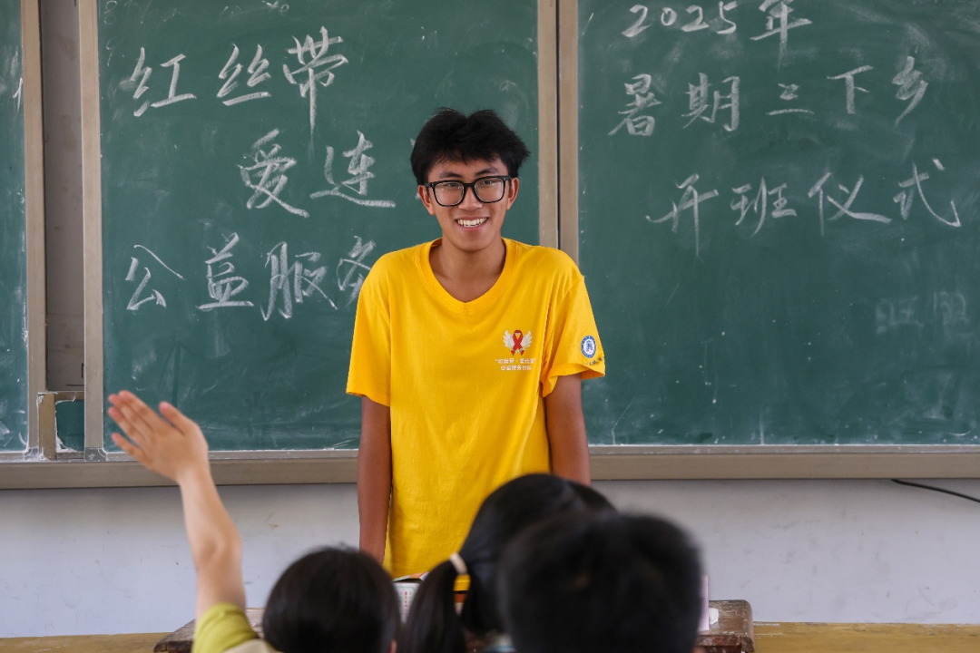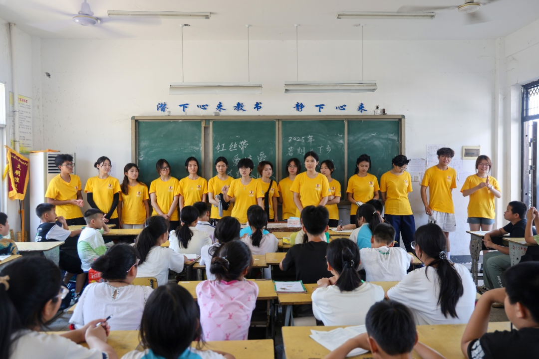 7月5日,黄冈师范学院传媒与影视学院“红丝带·爱连爱”公益服务团队在浠水县团陂镇第二实验初级中学(华桂校区)成功举办暑期“七彩假期”开班仪式。此次活动汇聚了21名来自黄冈师范学院不同专业的志愿者,将以思政教育、学业辅导、素质拓展、非遗文化、心理辅导等多元多维度的课堂形式,为孩子们打造一个充实有趣的“七彩假期”,让乡村学子在炎炎夏日里,在知识浸润与趣味体验中,收获成长的蜕变与心灵的欢愉。