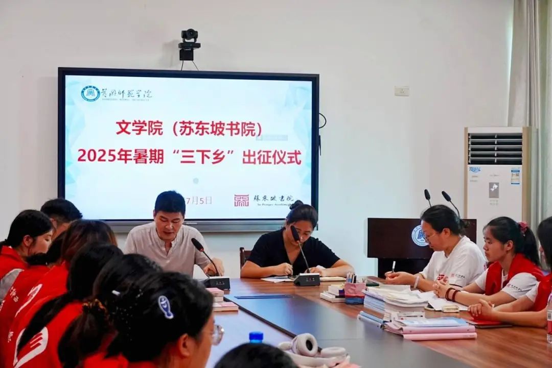 7月5日,文学院(苏东坡书院)“薪火行动”社会实践团队举行2025年暑期“三下乡”出征仪式。院长陈志平肯定团队精神,以守底线、践初心、传薪火为要,勉励队员以实干助力乡村振兴。党委副书记王艳艳紧扣支教与文化宣讲两大核心,从安全保障、教学优化、实践记录等维度部署任务,强调在服务中实现自我成长与社会价值的双向奔赴。最后,全体队员庄严宣誓,以青春姿态许下使命承诺,为出征仪式画上圆满句点,展现出青年学子奔赴乡村教育一线的热忱与担当。今年是团队再出发的第13年,薪火行动,不止于一程的奔赴,更是一份长久的坚守,团队将继续书写独属于薪火人的温暖故事。