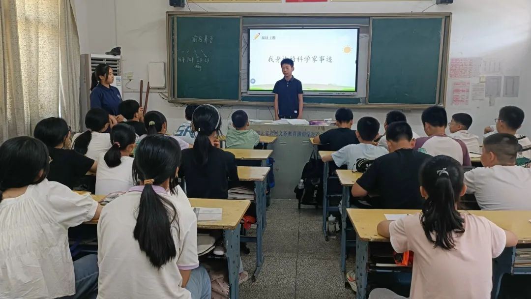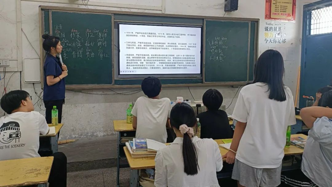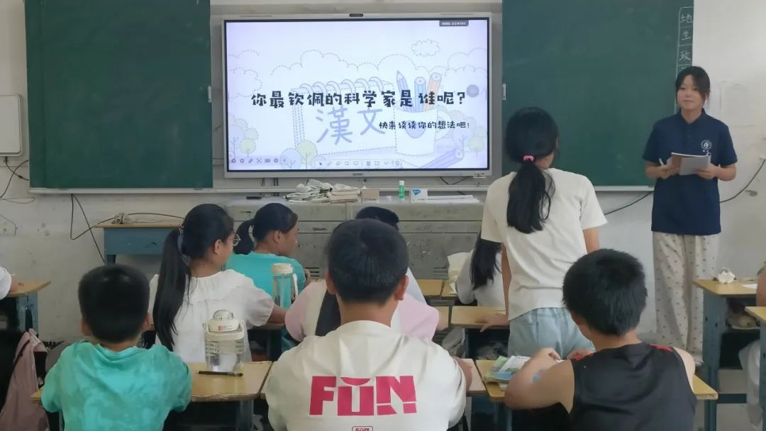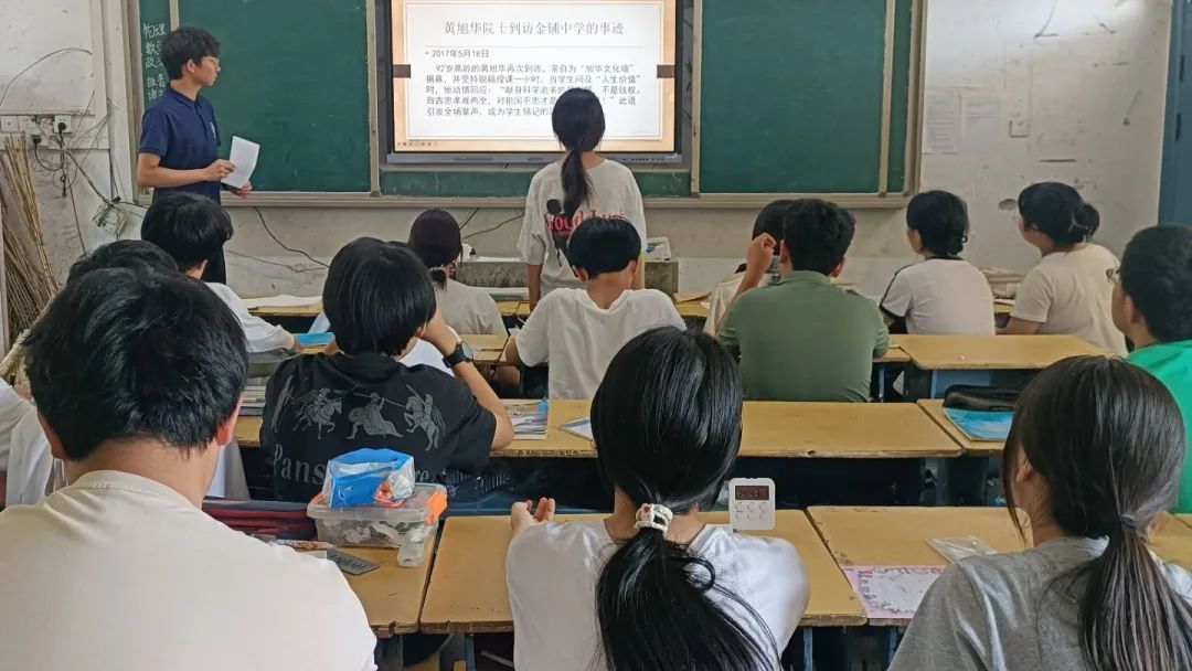 在基础教学之外,实践团队创新性地结合金铺中学“科学家精神进校园”特色项目开展推普工作。通过生动讲述四位院士来校交流的感人故事,推普教师不仅引导学生模仿标准语音语调,更将语言训练与学校文化认同教育有机融合,实现了普通话表达能力与校园自豪感的同步提升。