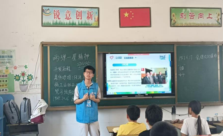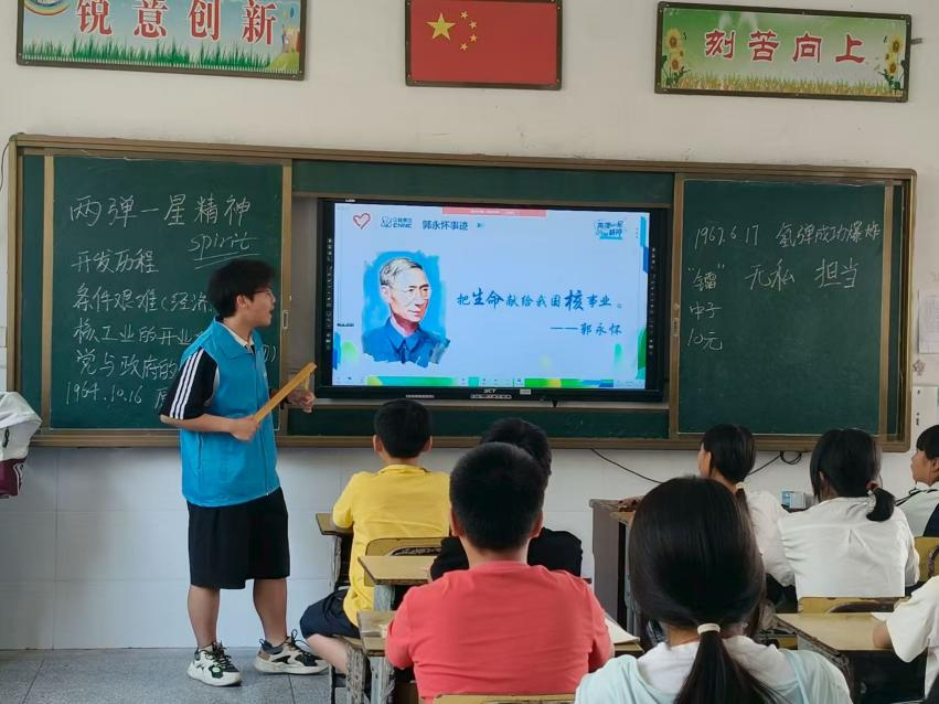 粉笔簌簌落下,志愿者与孩子们一同回望“两弹一星”的光辉历程,在这片田野上播下的星辰梦想,终将成长为支撑民族脊梁的力量。微弱的灯光虽如豆粒,却照亮了通往苍穹的道路。
