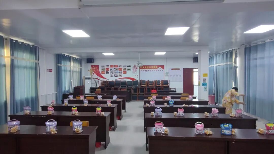 清晨,志愿者们早早来到教室,将精心准备的文具、书籍等礼物一一摆放在每个学生的座位上,等待着“小主角”们的到来。不久后,学生与家长陆续到场,教室里很快充满了欢声笑语。