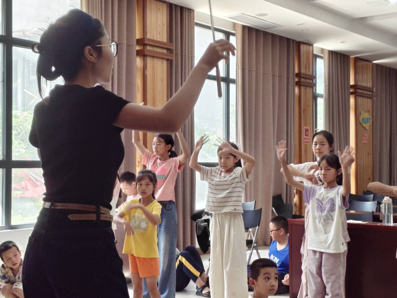 仲夏的龟峰山,蝉鸣织就绿意的交响。在群山环抱的村部院落里,一群年轻身影正与孩子们的欢声笑语交织成这个夏天最动人的风景——由商学院志愿者倾力打造的暑期爱心托管班,已成为山村孩童的快乐港湾。本周,这片小小的天地悄然变奏:课桌整齐地靠墙列队,村部礼堂化身充满魔力的排练场,空气中跃动着的旋律与孩子们清脆的练习声。一场精心筹备的汇报演出,正蓄势待发,只为向翘首以盼的乡亲们,展示这些山间幼苗在爱与陪伴中迸发的生机。当村部舞台成为乡村教育创新实践的窗口,一场以歌舞为翼、托举童真的成长故事,正蓬勃展开。
