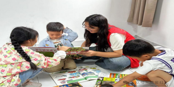 志愿者陪伴小朋友读书