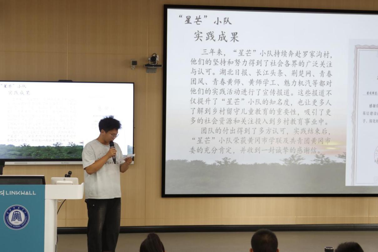 他谈到“青春最动人的篇章,是带着热切期望出发,更是在归来时满载收获与思考”,社会实践是青年学子认识国情、锤炼品格的“行走课堂”,大家用行动诠释了黄师青年是勇于扎根大地的实践者。