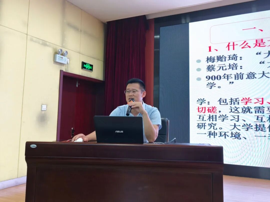 随后,建筑工程学院党委副书记董旭老师开启了一场意义非凡的知校爱校教育分享。他用生动且富有深度的语言,向新生娓娓道来大学的模样,阐释大学对于个人成长、社会发展的深远意义。同时,他还结合自身经验与学校实际,为新生们送上了饱含关怀与期许的建议,如一盏明灯,照亮新生们初入校园的前行之路。