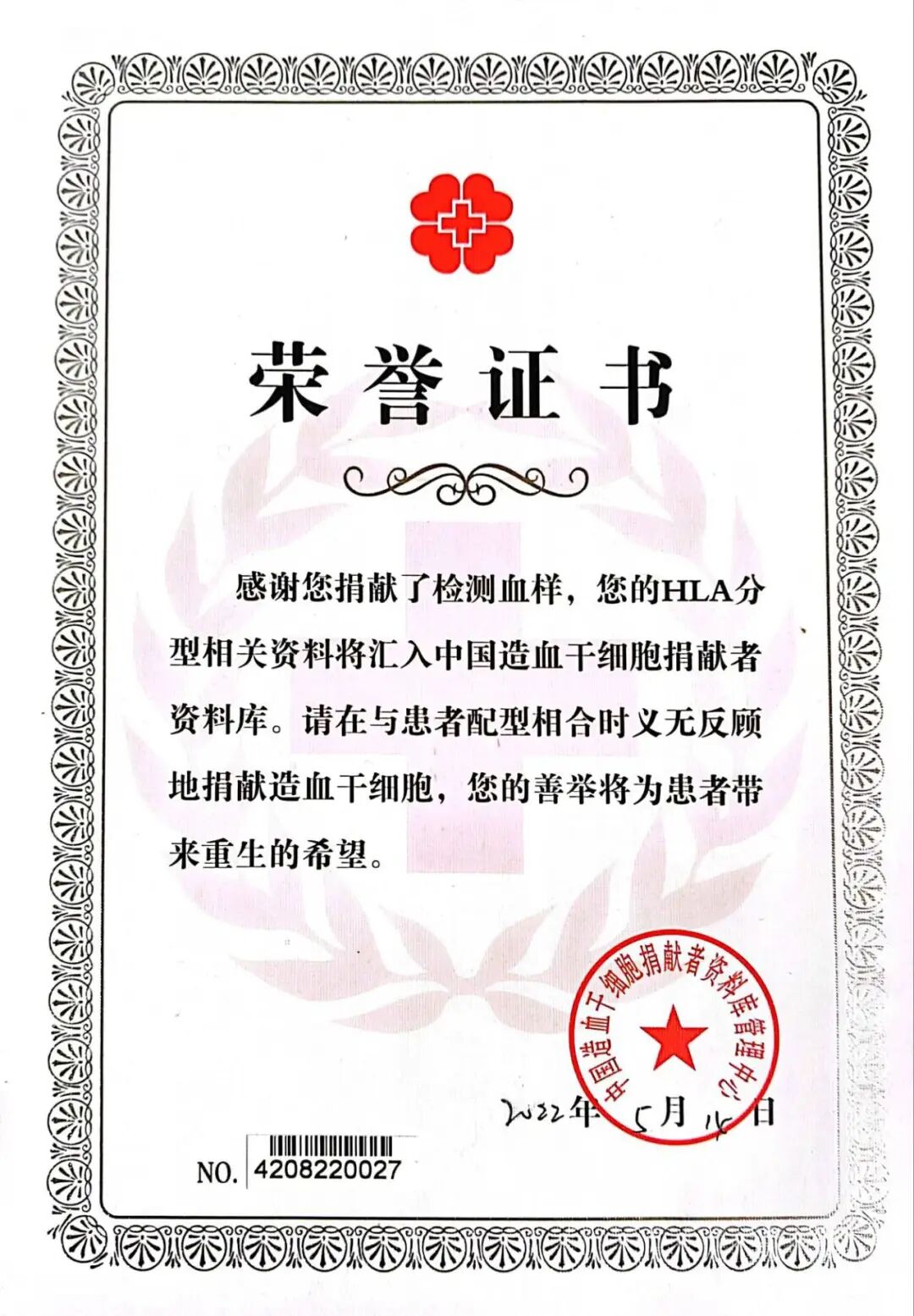 他九年献血5300毫升,成为造血干细胞捐献志愿者,是他献给社会的无声诺言。