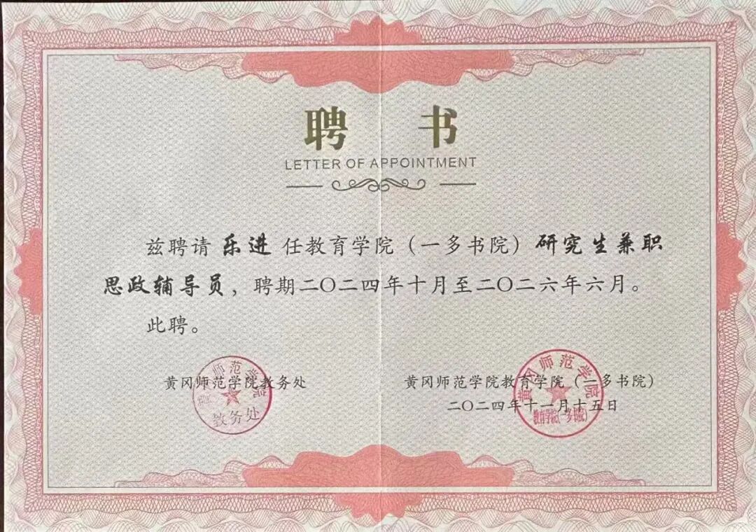 十年光阴,从专科到研究生,从军营到校园。变的是身份,不变的是那颗永远跳动的赤子之心。乐进始终以黄师校训为帆,以军人精神为舵。他的故事是新时代黄师青年“向下扎根、向上生长”的缩影。