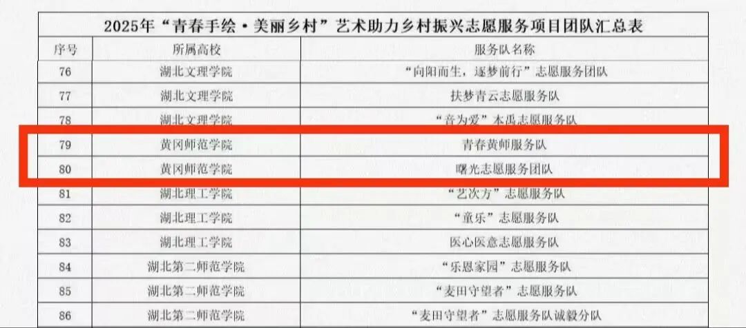 我校青春黄师服务队、曙光志愿服务团队成功入选湖北省2025年“青春手绘·美丽乡村”艺术助力乡村振兴志愿服务项目并确定立项!