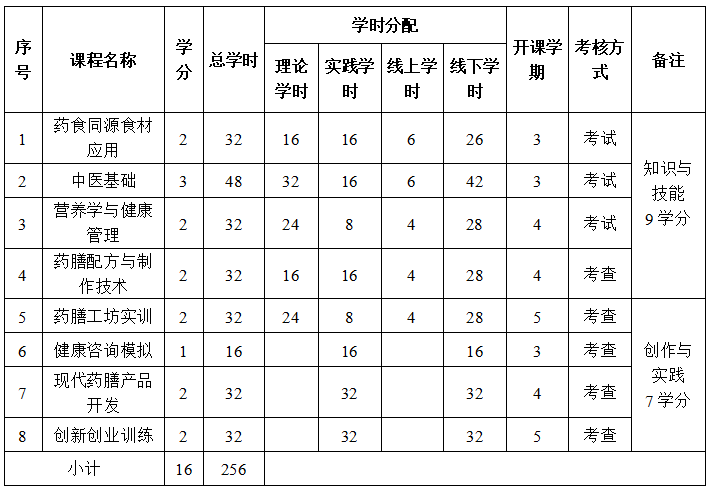 教学形式以线下教学为主、线上为辅,结合专题讲座、讨论、虚拟仿真实验、名厨/名医跟诊实践、工作坊实训等线上线下融合教学模式。课程考核以项目作业、实操考核(过程性评价)并结合理论考试、 综合技能考核(终结性评价)的形式进行考核,确保药膳康养课程学习效果的可评估性。