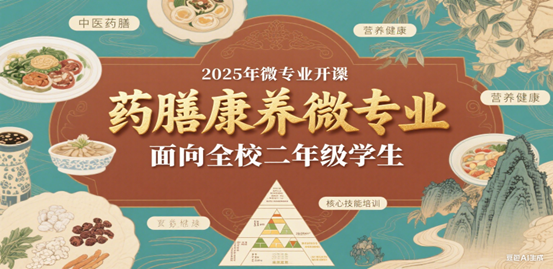 药膳康养微专业面向在校学生提供中医药膳、营养健康等核心知识与技能培训,使其具备中医药膳理论基础和实践技能,能够结合现代营养学知识,为不同人群提供个性化药膳调理方案的专业人才。