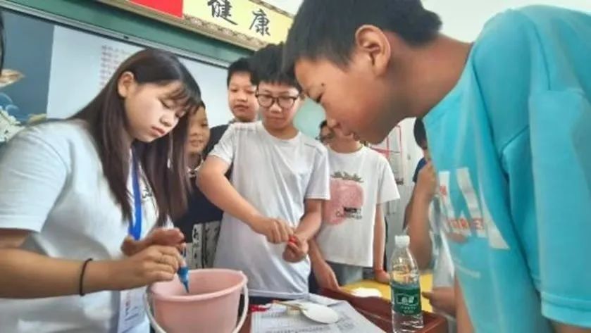 深入罗田县九资河镇,“启明星”社会实践团队的“三下乡”活动为九资河中心小学的孩子带来了一场非遗盛宴。漆扇制作成为亮点。志愿者周佳雯,揭开漆艺神秘面纱,讲解飘漆技艺的精妙。孩子们在指导下,小心翼翼地将五彩大漆滴落水面,拨弄、晕染,再将扇面缓缓浸入。当“入水一色,出水万彩”的奇迹在手中诞生,孩子们眼中满是惊喜与自豪,传统技艺的种子悄然播撒在乡村孩子的心田,为乡村文化振兴注入了青春的活力。