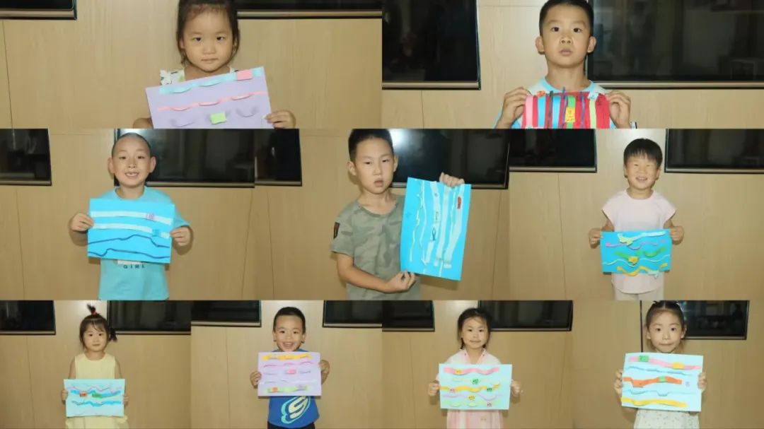手工课上,孩子们跟着老师一起“玩转”彩色海浪。课堂一开始,老师播放了一段海浪翻涌的动画视频,蓝绿交织的浪花在屏幕上起伏,抓住了小朋友的注意力。老师讲解构造和制作步骤后分发材料,孩子们立刻动起手来:在老师的帮助下,不一会儿,一幅幅色彩明快、形态各异的“海浪”作品就初具雏形。