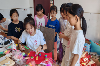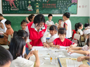 青春黄师服务队的杨春洁同学,将目光聚焦于传统文化的传承。她和团队成员化身“非遗传承引路人”,为乡村孩子精心打造了别开生面的文化体验课堂。“我们把剪纸的‘咔嚓’声、扎染时色彩晕染的奇妙瞬间,都当作解读非遗文化的密码……”杨春洁分享道。轻粘土捏塑、扭扭棒创意、蓝白扎染、红纸剪纸……孩子们在动手实践中,感受着传统工艺的魅力。同时,“小小非遗传承人”、“黄冈历史文化名人故事”等特色课程的开展,极大地增强了孩子们对中华优秀传统文化的认同感和自豪感。“这不仅是在传授技艺,更是在孩子们心中播下文化自信的种子,我们自身也在传承与实践中获得了宝贵的滋养。”杨春洁深有感触。