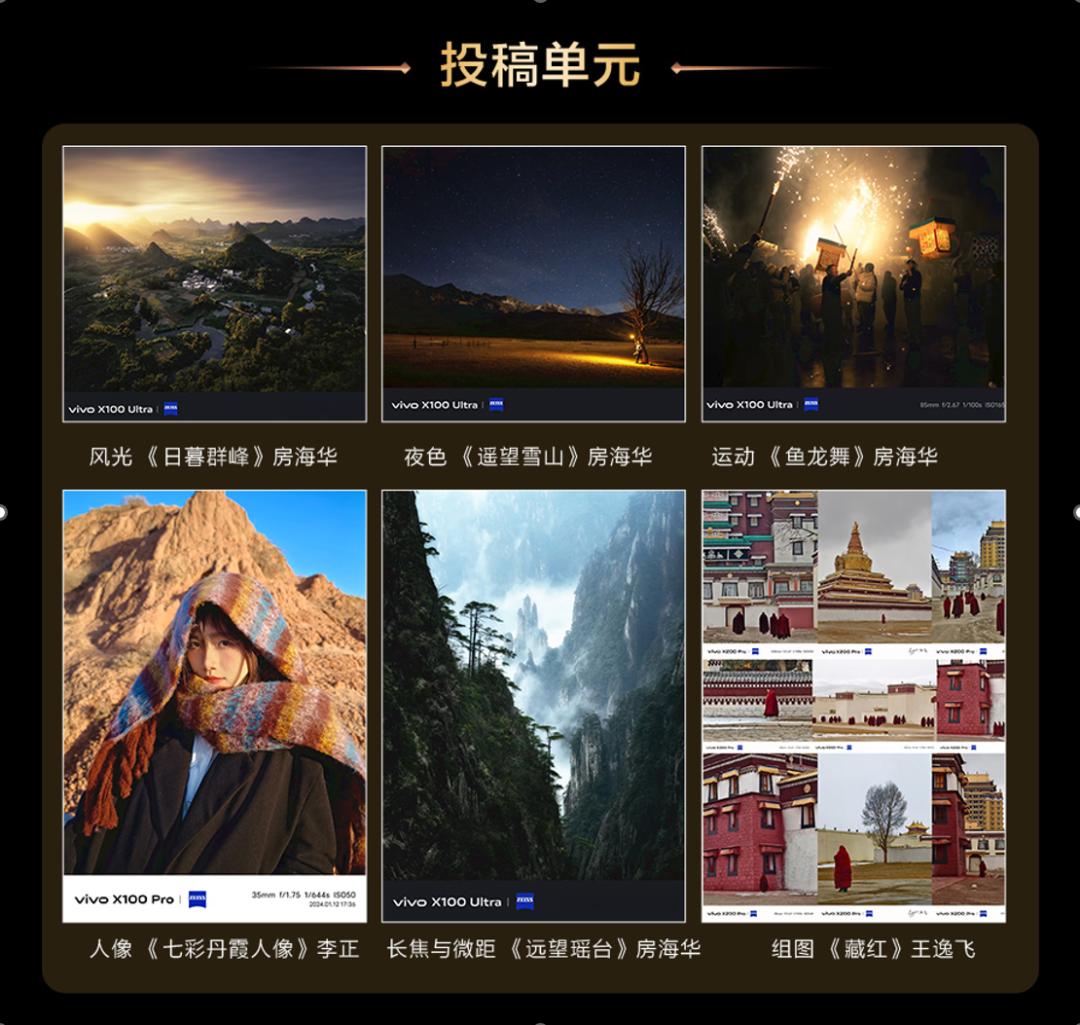 月月刊:每月入选总数10件。包含1件大众人气作品,奖励1000元; 9件专业评审作品,其中3件vivo产品拍摄作品可入选年刊,各奖励3000元,其他6 件各奖励1000 元。