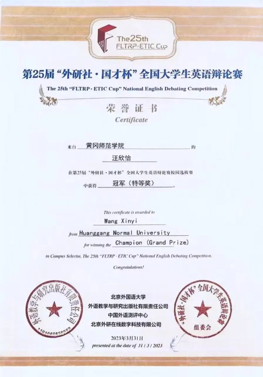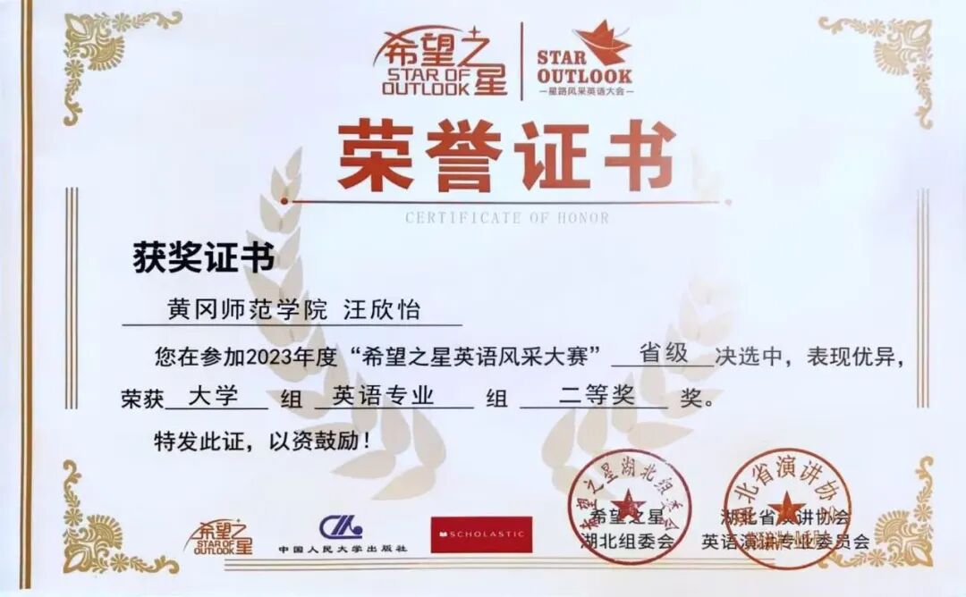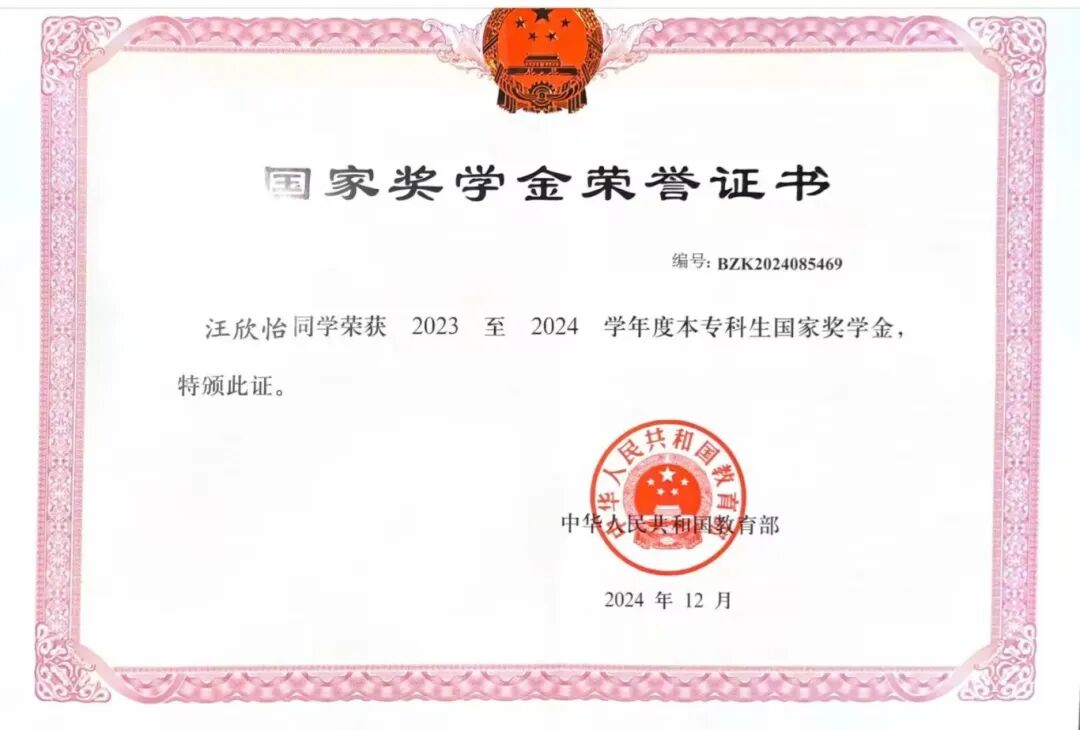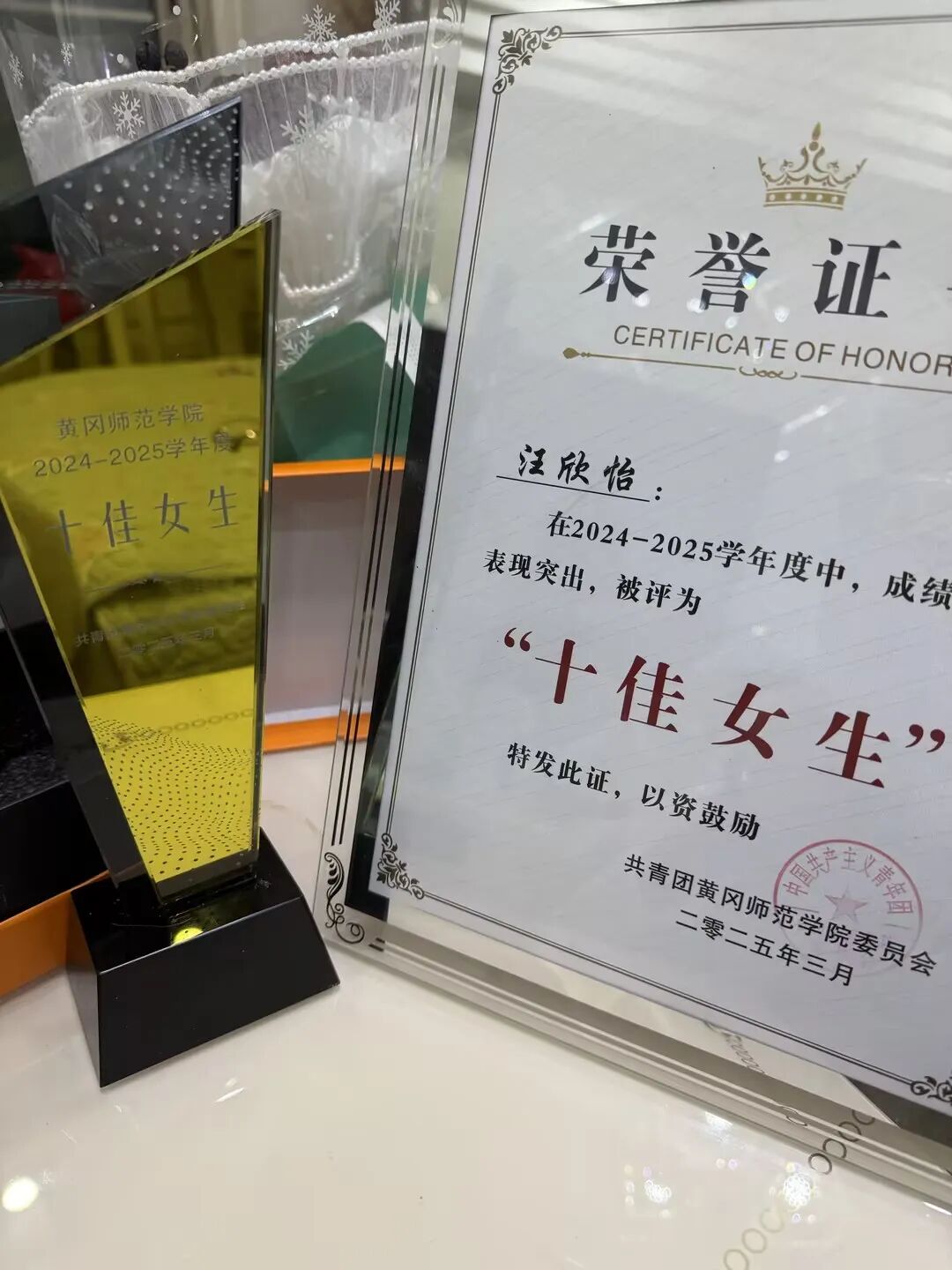 在学业竞赛方面,她步履不停:六学期专业第一,均分90.78分,核心课超90分,获英语专四、跨文化能力等级等证书;两度获“明珠学子奖学金”,2024年摘国家奖学金,获评“十佳女生”“三好学生标兵”;英辩赛冠军、“希望之星”省二等奖、教师技能赛一等奖,皆为“博学强能”的诠释。