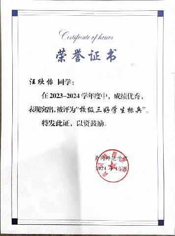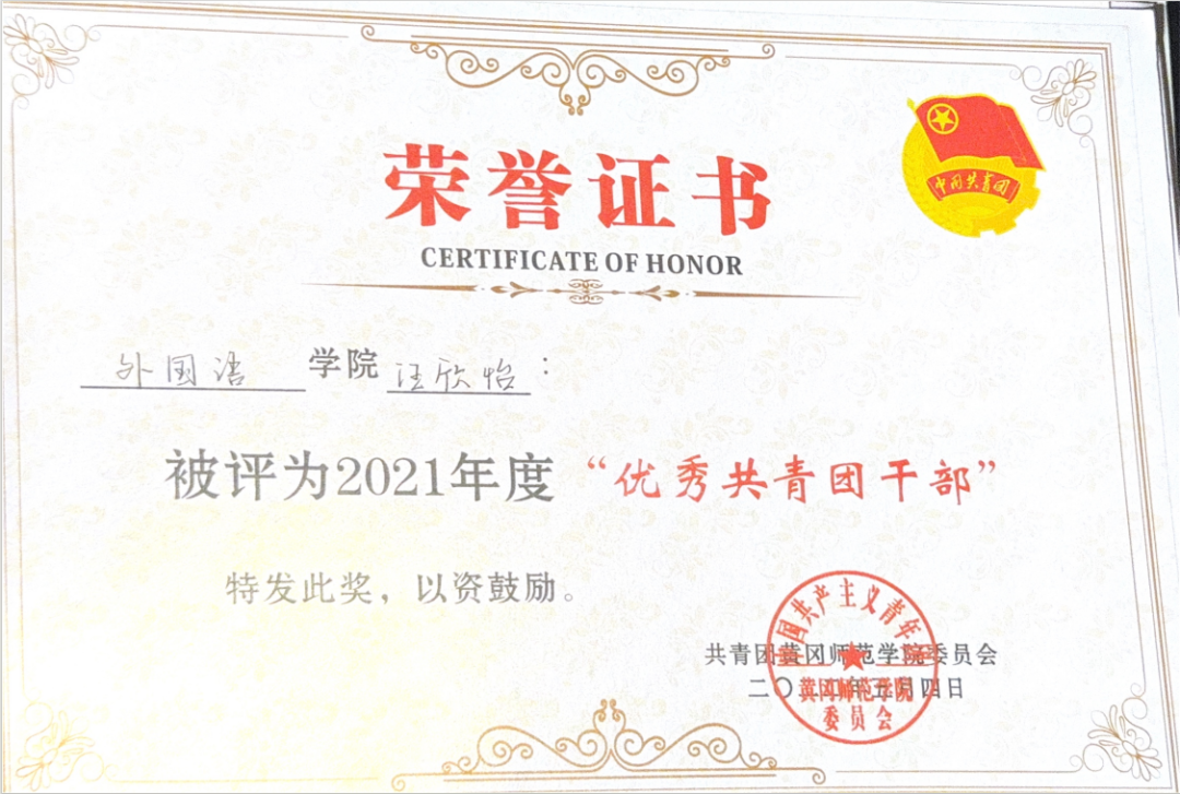 作为学生干部,她以担当为责:在任团支书时率支部活动参与率100%,2022年获评“百佳团支书”,连续三年获“优秀团干”;2024年加入中国共产党,将奉献融入日常,让青春在党旗下闪光。
