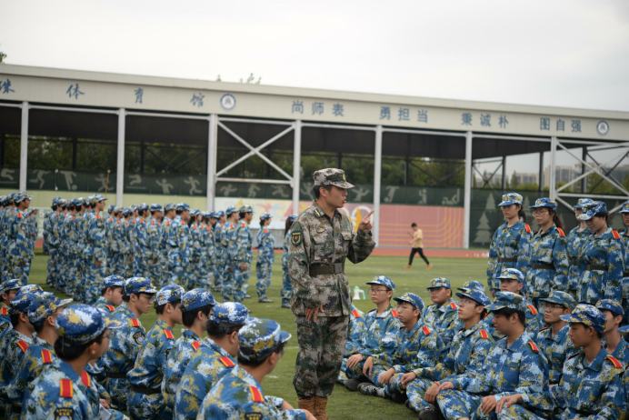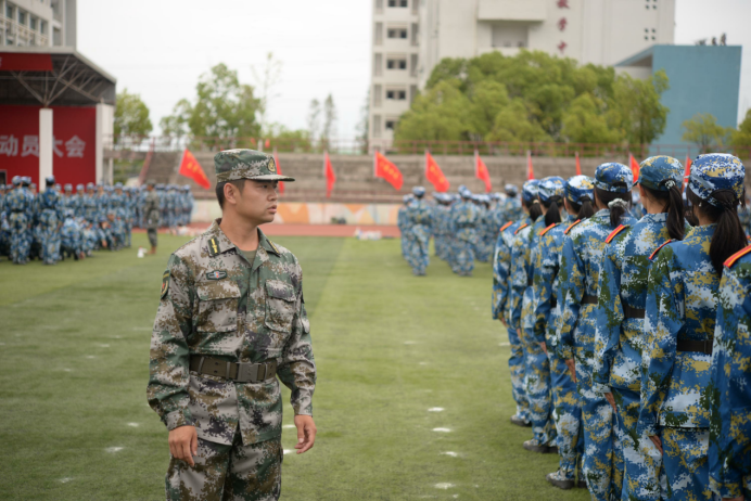 训练中,教官们是严格的领路人。他们身姿挺拔如松,每一个指令都清晰洪亮、掷地有声。从摆臂的高度到踢腿的角度,从眼神的专注到身体的姿态,教官们细致纠正着新生们的每一个动作,不放过任何细节。休息时,教官们又化身为亲切的大哥哥大姐姐,会和新生们分享军旅故事,用自己的经历激励大家,偶尔还会带着大家唱军歌、做小游戏,军营的严肃与温暖在他们身上交融,成为军训场上一道独特的风景线。
