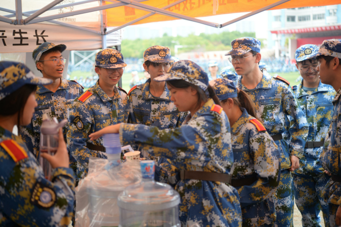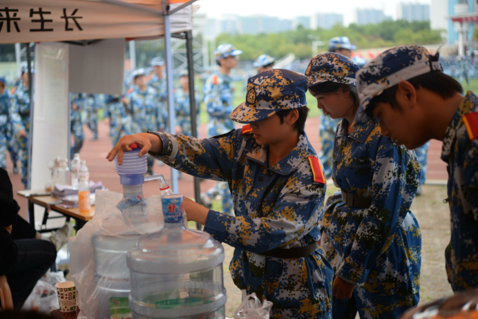 老师和学长学姐们也为军训中的新生们送来关怀。他们带来的桶装水,如同夏日里的一股清泉,滋润着新生们的心田;一句句暖心的问候,更是给了新生们坚持下去的动力。老师们仔细询问军训进展,鼓励大家要勇于挑战自我,在军训中磨砺意志、强健体魄。