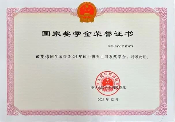 作为青年党员,他既是理论的“深耕者”,更是实践的“排头兵”。他以全院第一的学业成绩荣膺2023-2024年度研究生国家奖学金,并连续两年获评“三好研究生”,用知行合一践行“躬耕教坛、强国有我”的青春誓言。