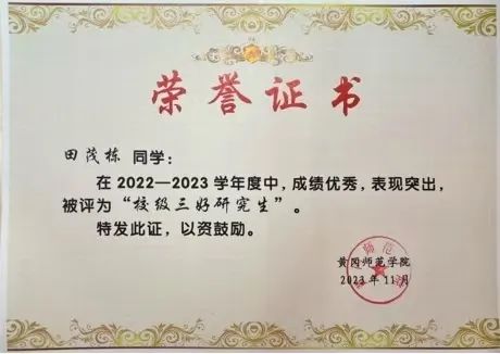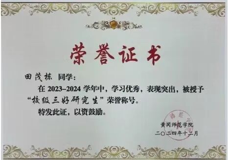 作为一名黄师学子,他深耕不辍,探数学教育之精微;作为一名教育硕士,他知行合一,铸教书育人之匠心;作为一名共产党员,他崇德向善,践强国有我之担当。以奋斗为舟,以理想为帆,他就是数学与统计学院2022级硕士研究生田茂栋。