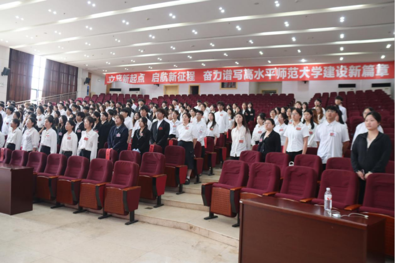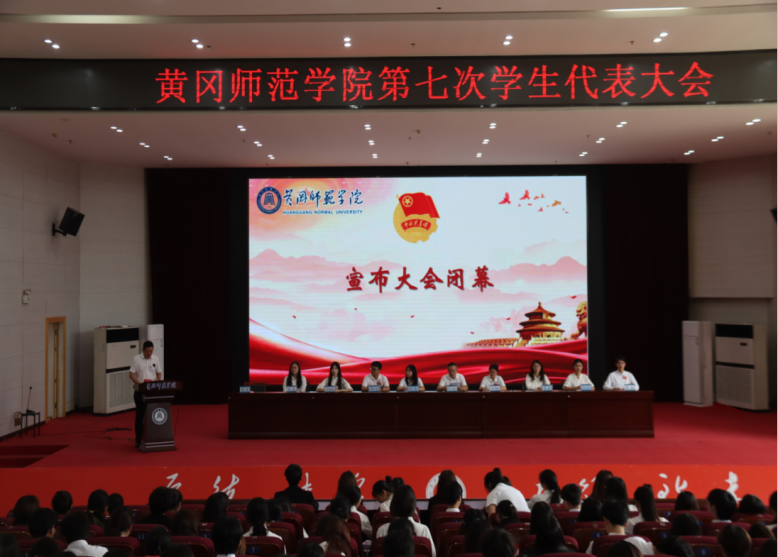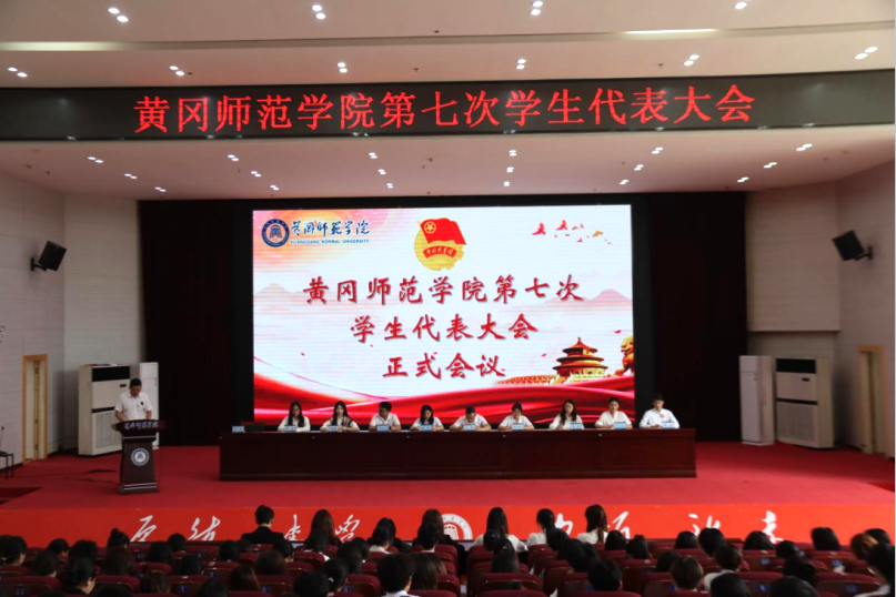 2025年6月15日下午14:30,黄冈师范学院第七次学生代表大会在南区厚德楼学术交流中心顺利召开。党委学生工作部副部长刘鹏、校团委学生(兼职)副书记吴可依参加会议,全校各学院学生代表参加会议。本次会议由校学生会秘书长徐鑫主持。