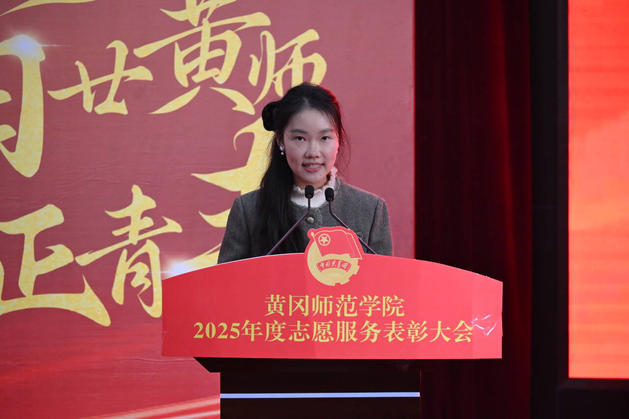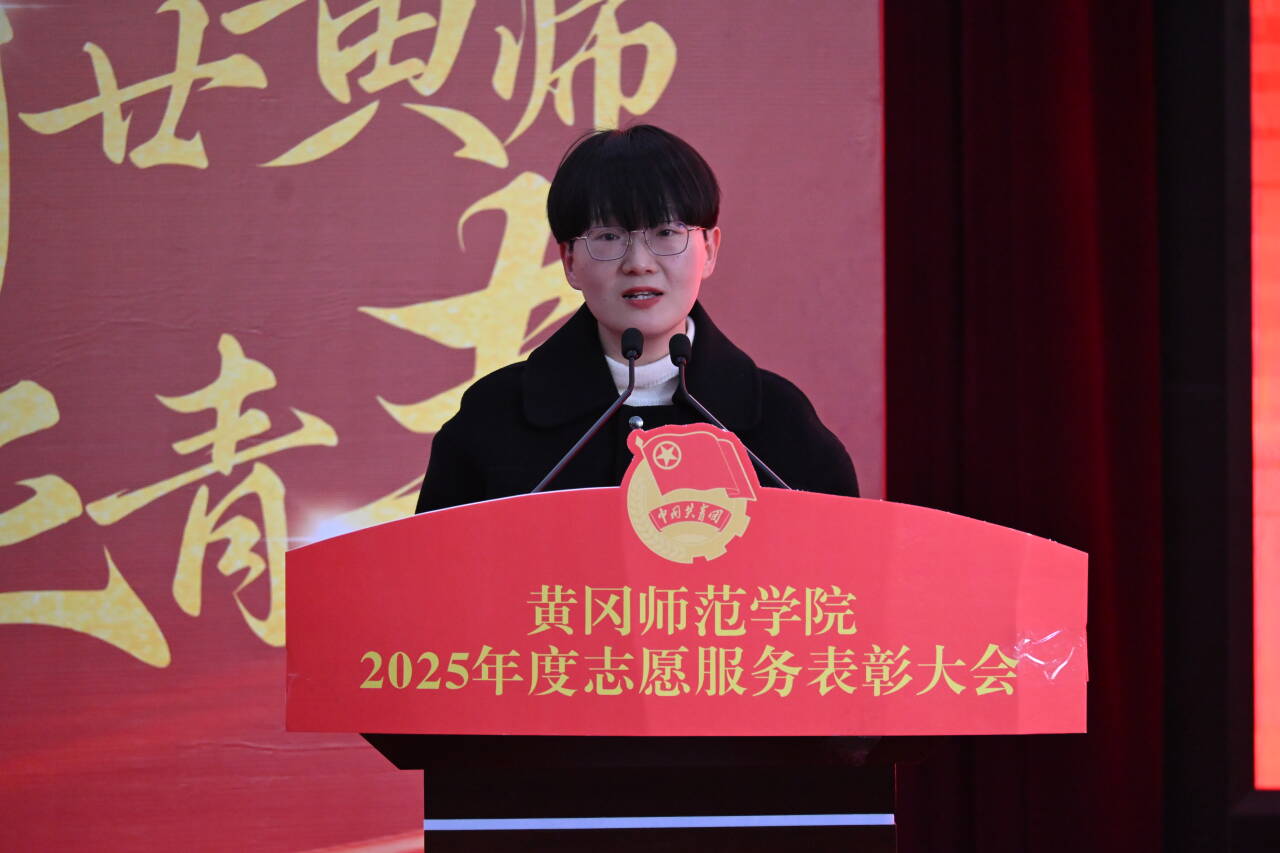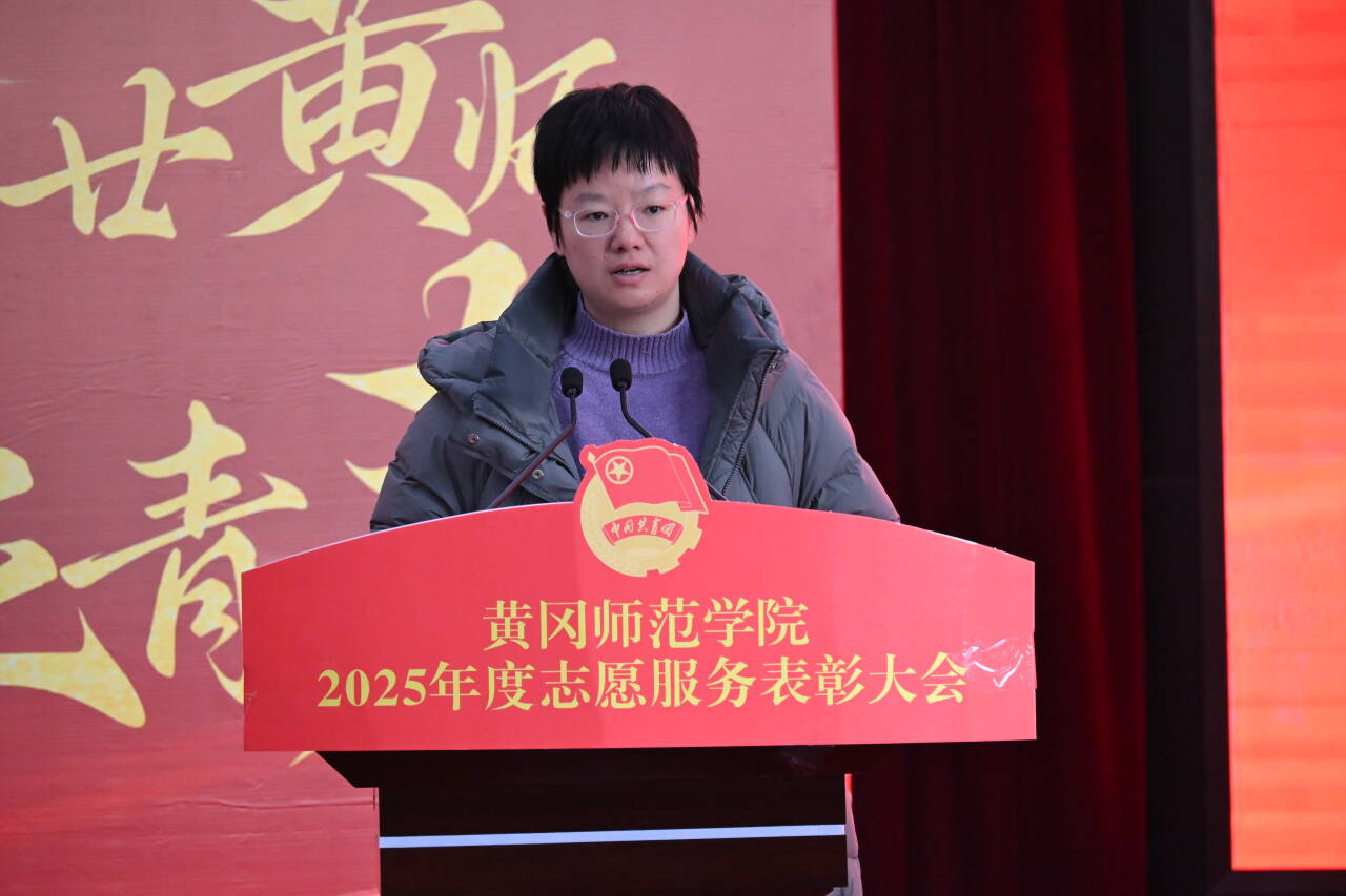 最后,校团委书记陶莎作总结讲话。她代表校团委向所有受表彰的先进集体、优秀个人及全体师生志愿者致以诚挚祝贺与衷心感谢,全面回顾了2025年学校志愿服务工作的显著成效。过去一年,学校志愿服务“实打实推进,数据化落地”,累计开展“校友回归”系列活动、黄冈半程马拉松服务等各类志愿服务2196项,新增志愿者5035人,累计服务时长162048小时;暑期“三下乡”活动中,771名志愿者深入8个县市区73个基层点位服务,斩获263份感谢信及多项国家级、省级志愿项目认定;46名优秀志愿者投身西部计划,用行动践行奉献初心。陶莎号召受表彰者珍惜荣誉、做好表率,全体志愿者以问题为导向提升专业能力,广大同学主动加入志愿服务队伍,让志愿精神在实践中生根发芽,让青春在为民服务中闪光。