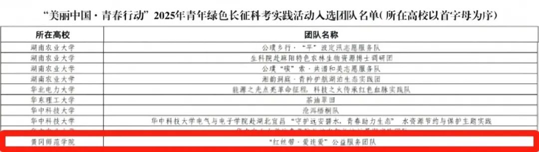 两支团队入选国家级项目,是师生深耕实践的硕果,更是我校育人与社会实践工作踔厉争先的生动写照!未来,黄师青年将昂扬奋进新征程,学校将深化社会实践与思政教育融合,引导青年扎根基层、服务群众,在绿水青山间绘就生态守护蓝图,于群众心中传递安全宣传温情,锤炼实践能力、创新精神与社会责任感,为学校高质量发展与“校友回归”暨建校120周年系列活动,献上饱含青春力量的厚重答卷!