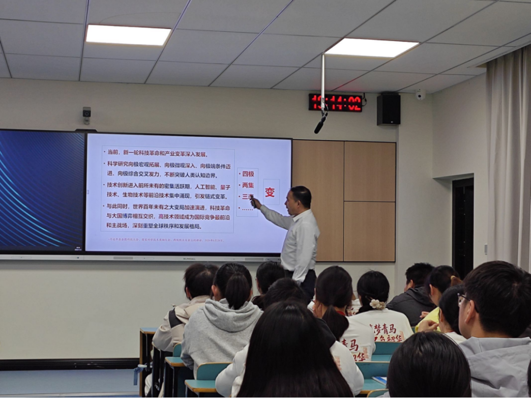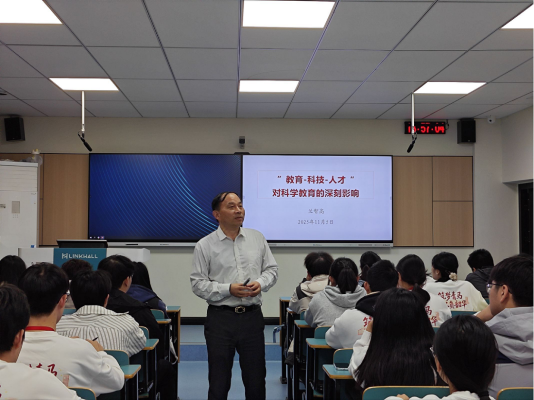 兰智高院长授课逻辑清晰、旁征博引,他从新一轮科技革命的时代背景切入,围绕“科技变革如何重塑科学教育?”“青年学子如何在科教协同中践行使命?”两大核心命题展开阐释。他强调,把握科技与教育的联动关系是青年融入强国建设的必修课。这既是理解新质生产力本质的认知前提,也是青年成长为创新型人才的实践根基;学深悟透后,既能看清科学教育的革新方向,更能找准自身在“教育-科技-人才”链条中的定位,以专业所长对接国家需求。