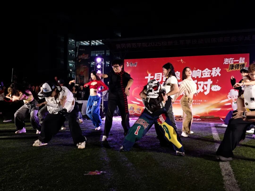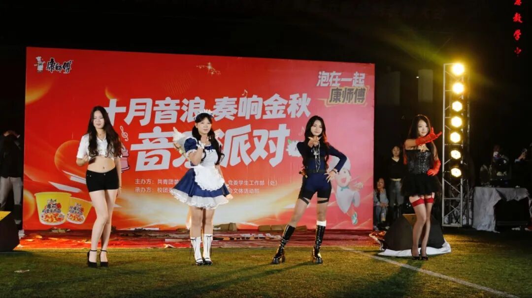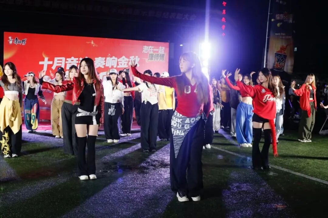 随后,本次音乐派对最热闹的环节来临:《日不落》等音乐一响起,全场秒变巨型广场舞现场!在“舞者”的带领下,同学们随音乐齐舞,瞬间点燃秋夜激情。这才是青春该有的样子——自由、热烈、无所顾忌!