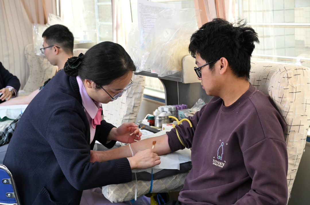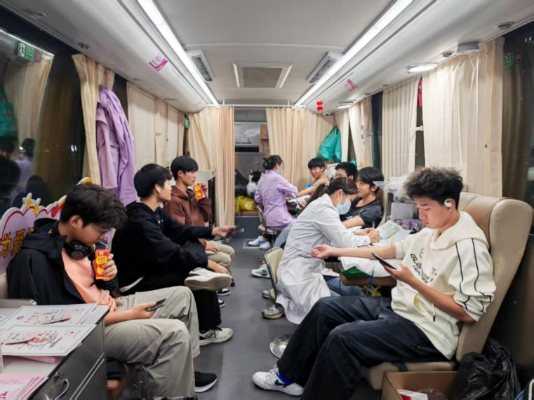 师生们参与热情高涨,来自不同学院的师生排起了整齐的长队,有的是第一次献血,在医护人员的安抚和志愿者的陪伴下逐渐放松;有的则是“献血常客”,熟练地完成各项流程,还主动分享自己的献血经历,鼓励身边其他人勇敢参与。采血过程中,大家或静静注视着血液缓缓流入血袋,或与身旁的好友轻声交流,脸上洋溢着奉献后的自豪。