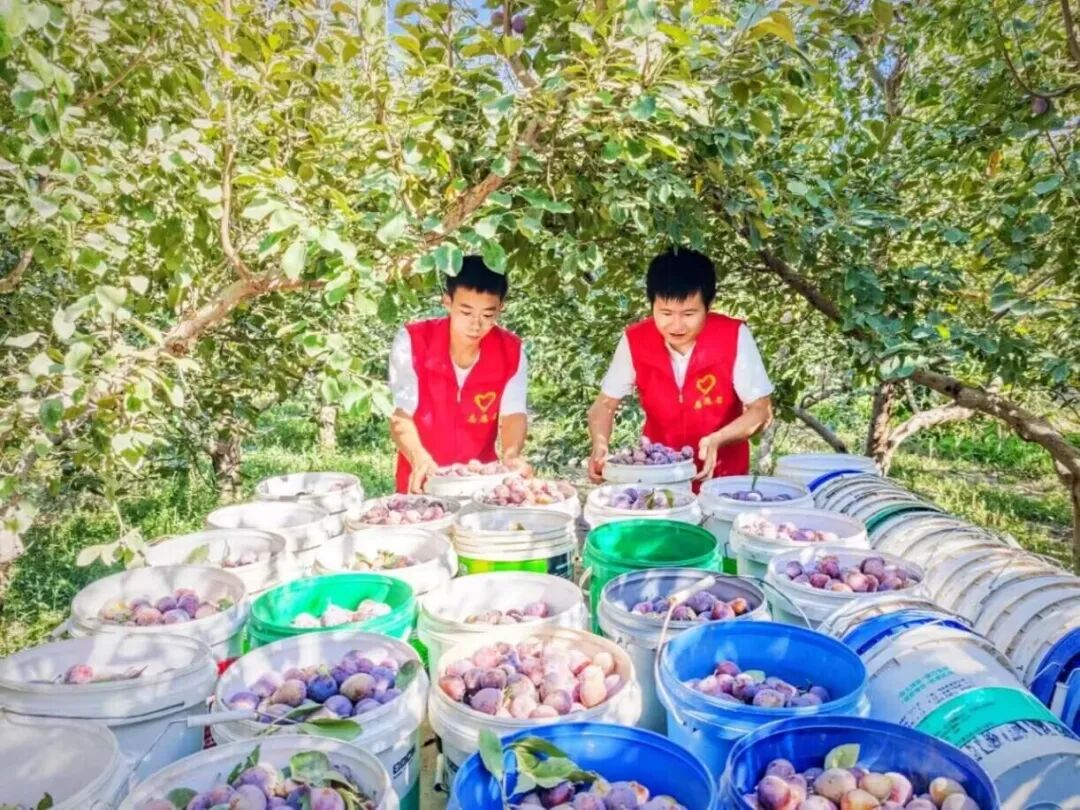 夏末秋至,终于迎来了累累硕果。我们在一片红彤彤的红枸杞种植基地拍照采风时,枸杞园的园主热情地向我们介绍他的枸杞园:“这一片是5号品种,从甘肃引进的,果形圆、肉厚;那片是咱自己培育的新品种,果更大,甜度还高!”他领着我们走到晾晒场,指着金灿灿的枸杞干,眼角的笑纹里都裹着光:“每年能产25吨干果,果子质量硬,县里电商平台又帮着拓宽销路,根本不愁卖!”语气里的喜悦,比枸杞还甜。枸杞种植基地的另一边,一串串深紫色的西梅挂满枝头,采摘工人们穿梭在果树间,摘果、分拣、打包,动作麻利又熟练。我们询问今年果子的行情,果农捧着刚摘的西梅,掩饰不住眉梢的喜悦说道:“今年价格不错,每公斤十五六元,要是没有沙尘的影响,明年收成肯定会更好!语气里透出对来年收成的憧憬和盼头。来帮忙采摘的维吾尔族大叔,一边把西梅装进纸箱,一边笑着说:“来这儿帮忙每天能挣160块,干15天就有2000多块收入,等西梅摘完,就去尉北摘香梨,也能有不错的收入……”他说着,把一颗刚擦净的西梅塞进我手里,我咬了一口甜意顺着舌尖蔓延,红色的果肉就像他爬满皱纹的笑脸一样那么赏心悦目,深深印在了我的心里。
