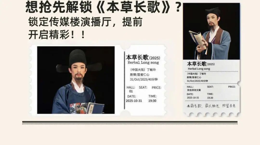 《本草长歌》将于2025年10月31日、11月1日在传媒楼一楼演播大厅公演,欢迎大家前来观看,凭票入场。