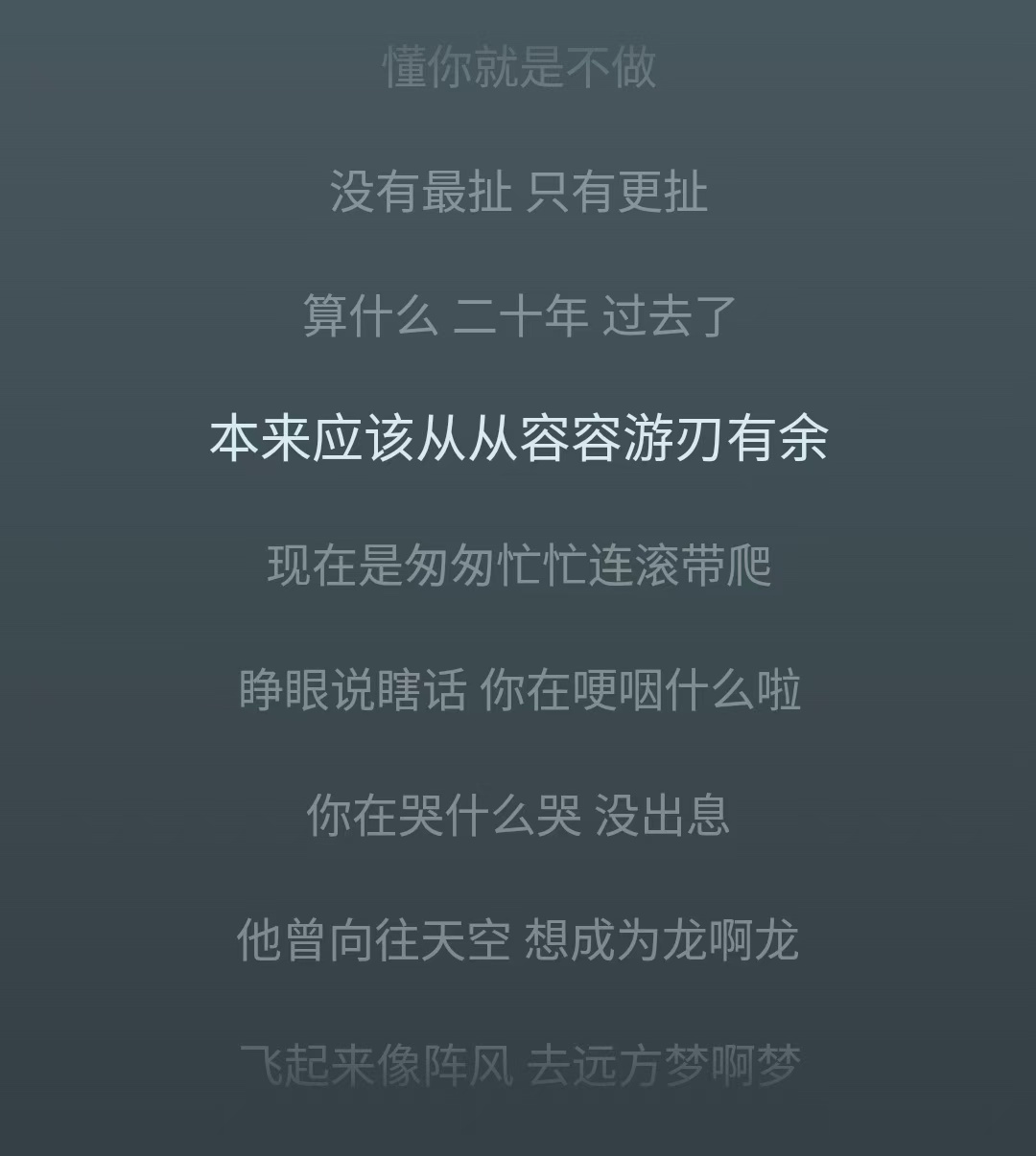 “本来应该从从容容、游刃有余, 现在是匆匆忙忙、连滚带爬。 睁眼说瞎话,你在哽咽什么啦? 你在哭什么哭,没出息!”