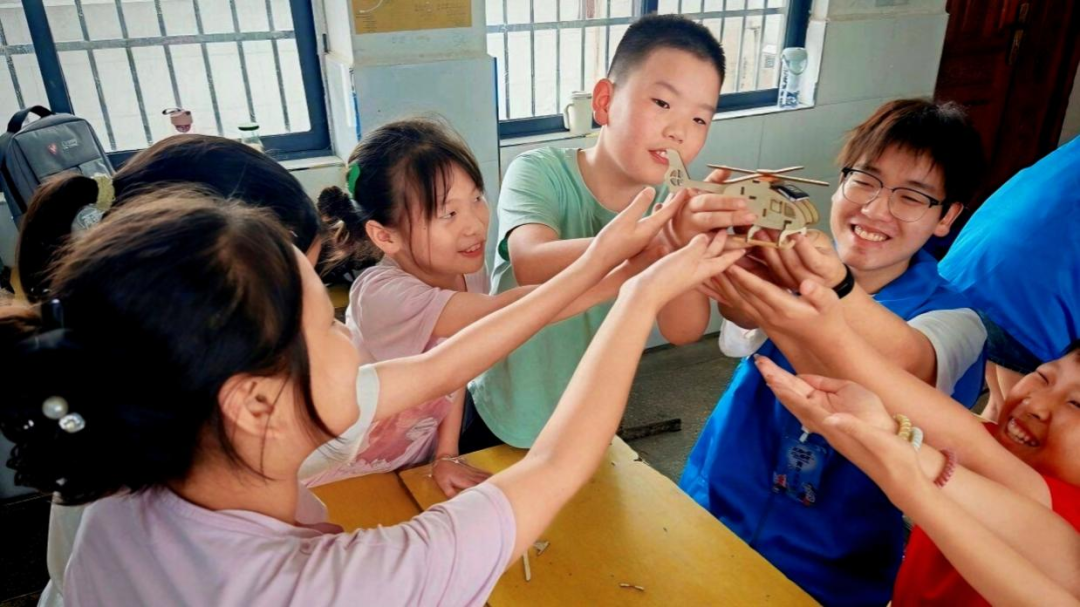 “两弹一星”精神志愿宣讲课上,志愿者带着孩子们动手制作着太阳能飞机模型,他们一起拆卸木板、拼接外壳、连接电路,用生活有趣的手工活动激发孩子们的好奇心、开动脑筋、提高动手能力,培养孩子们的创新精神。