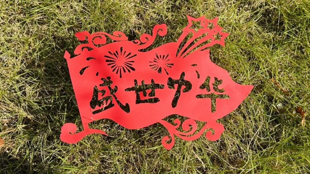有人把“盛世中华”剪成飘扬的旗帜