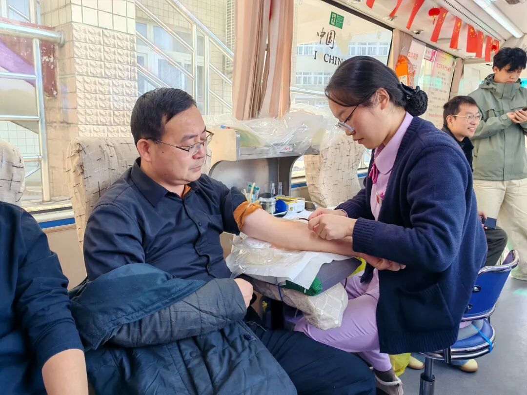 与此同时,学院领导老师率先挽起衣袖,带头加入采血行列。从登记信息到完成献血,领导老师们的从容与坚定,为现场师生树立了榜样。他们的率先垂范,极大地鼓舞了大家的参与热情,让爱心暖流在活动现场涌动。这一举动,也生动展现了物理与电信学院领导老师们对公益事业的高度重视与身体力行的支持。