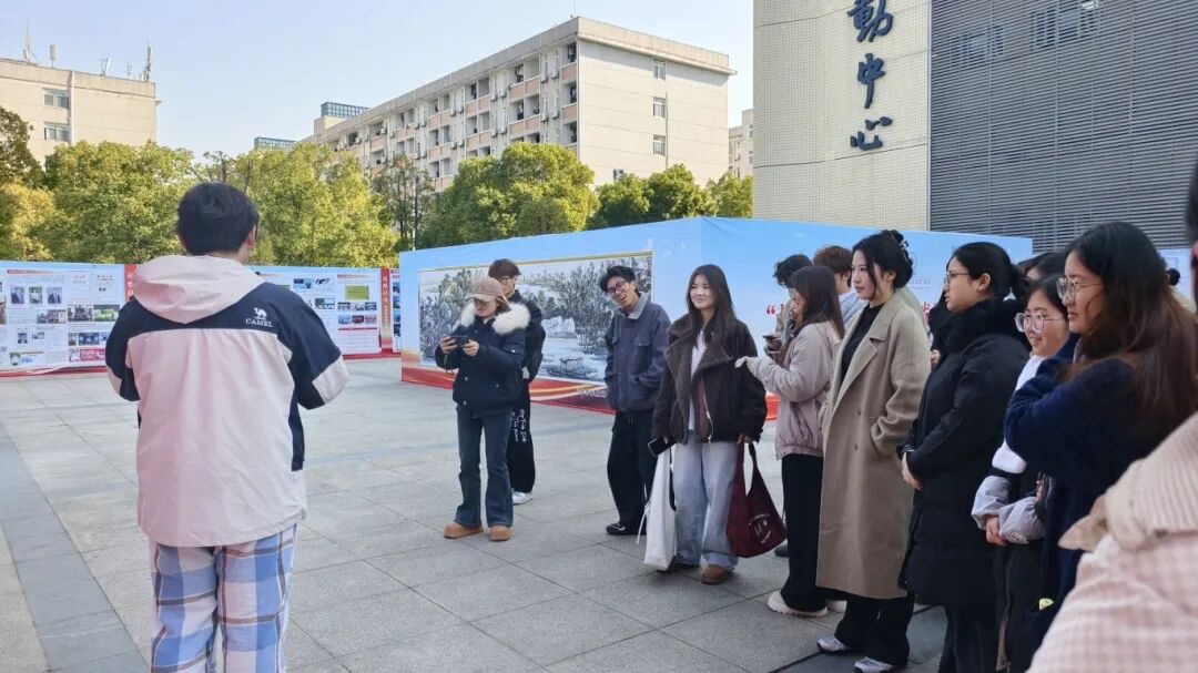 展览以“薪火相传、弦歌不辍”为主线,通过一幅幅历史图片、一组组发展数据、一个个生动案例,系统展现了学校自创立以来,始终坚守师范教育初心、不断开拓进取的奋斗足迹。在讲解员谢金宏同学的带领下,学员们依次走过党建引领、教育教学、师资建设、学科发展、社会服务、文化传承、国际交流等展区,全面了解了学校在各方面取得的扎实成就与鲜明特色,深切体悟到学校“源于师范、兴于师范、强于师范”的办学坚守。