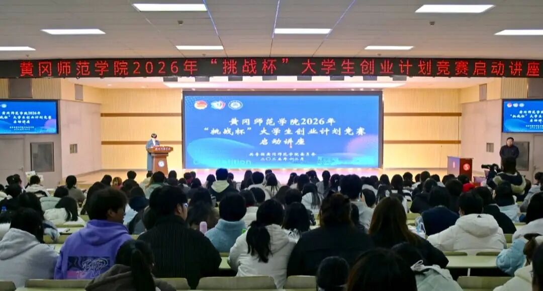 12月10日,黄冈师范学院2026年“挑战杯”大学生创业计划竞赛启动讲座在北区一站式学生社区大学生活动中心举行。校团委书记陶莎,校团委副书记叶俊,各学院党委副书记、团委书记及各学院参赛团队参加此次讲座。曾任“挑战杯”国赛评委的马宏飞老师应邀作主题为《评委说:好项目是如何练成的?》的讲座。