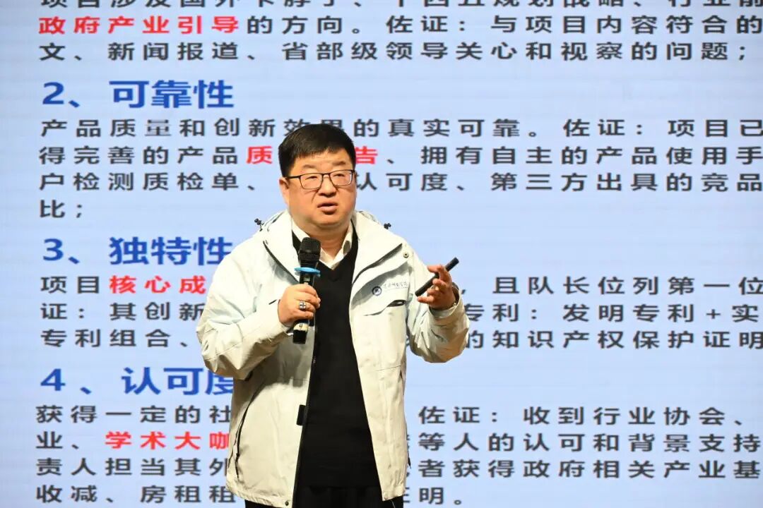 讲座中,马宏飞老师进行了全方位的赛事解读、系统解构“挑战杯”:先明确赛事本质,次析创新创业赛事异同,再拆赛道分类逻辑,终聚焦评审要点与创新价值升华。他依据我校办学底蕴和“挑战杯”各赛道特点提出建议,明确强调黄师学子要立足“源于师范、兴于师范、强于师范”基本核心点,打造凸显黄师特色、凝聚黄师精神的优秀项目作品。