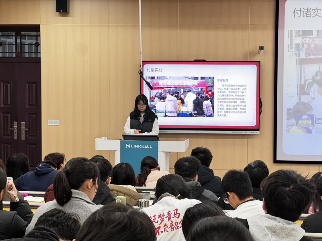 34号学员吴定振的宣讲围绕“践行志愿精神,担当青春使命”展开,核心是弘扬“奉献、友爱、互助、进步”的志愿精神,结合青年志愿服务实践,既阐述了志愿精神的时代内涵与价值,也体现了青年主动承担社会责任、在服务中实现自我成长的担当,传递了以实际行动助力社会发展的青春力量。
