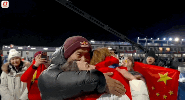 苏翊鸣到场边与父母拥抱