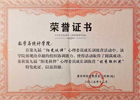 在第九届“阳光伙伴”心理委员成长训练营活动中,数学与统计学院不仅凭借扎实的工作收获“优秀组织奖”与“心理班会优秀奖”,更有一批用心付出的同学脱颖而出,获评“优秀心理委员”。为表彰先进、树立榜样,我们一同走近这些温暖的身影,感受他们独有的风采与榜样力量。