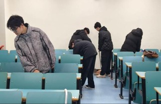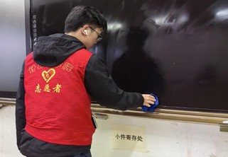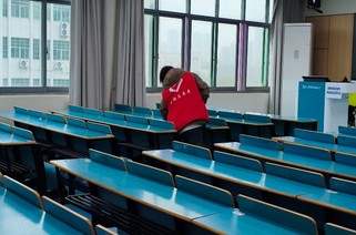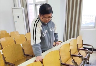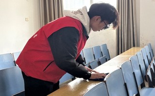 志愿者们身着志愿马甲,按照分工开始清扫。擦拭课桌时,大家细致清除表面的笔迹、污渍与胶印;清理抽屉时,耐心捡拾残留的纸屑、零食袋与废弃文具,将杂物分类装入垃圾袋;博学楼的走廊里、创新楼的教室中处处可见志愿者们的身影,他们用汗水换来了教室的整洁,也让雷锋精神在劳动中传递蔓延。