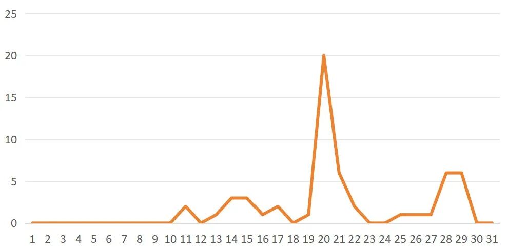 从3月的每日发布的志愿服务活动数量来看,因开展雷锋月志愿活动,每日活动数量在3月20日达到峰值;3月份活动开展的数量最多的一天有20个活动。但本月活动存在每日活动数量波动较大的问题,希望各组织能够积极开展志愿服务活动,为大学生提供更多参与志愿服务活动的机会,丰富大学生的社会经验,培养志愿服务精神。