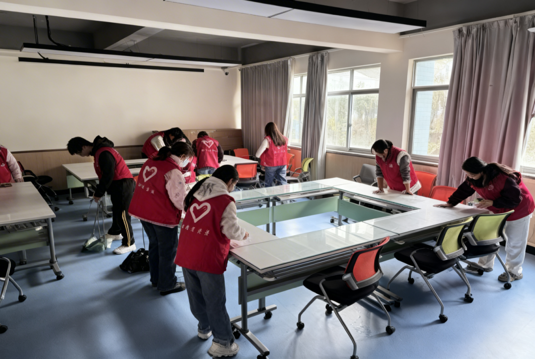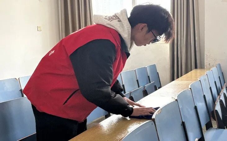 活动期间,校团委精心谋划、周密安排,通过学院动员、线上报名等形式广泛招募志愿者,结合三座教学楼的教室分布制定详细清扫方案,明确各学院职责与任务。